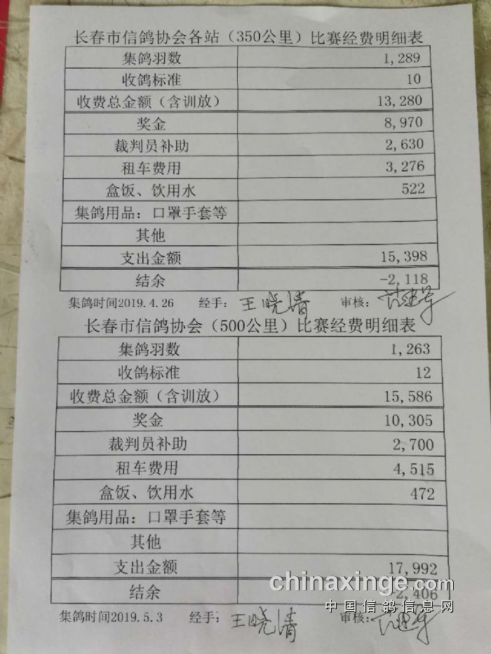 2019年春350公里、500公里比赛经费明细表