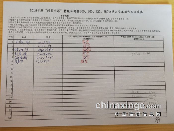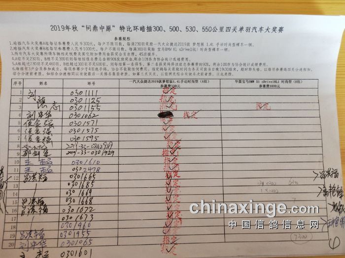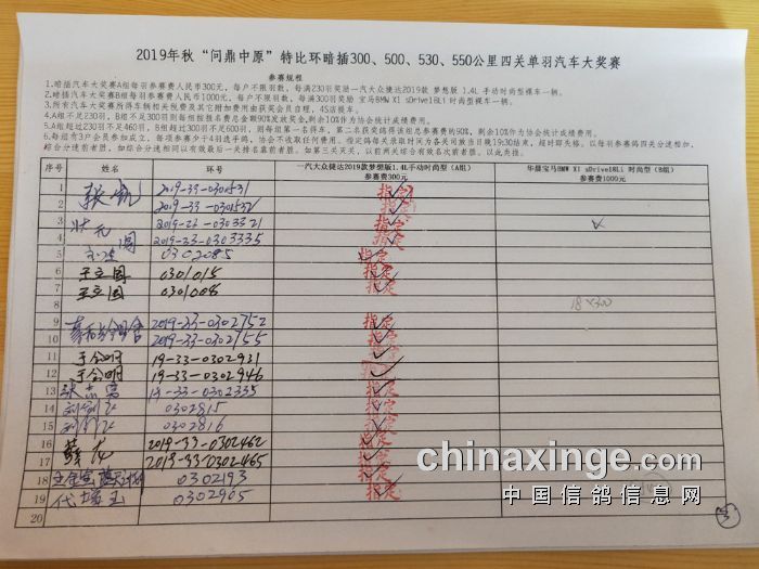 2019年秋特比环暗插300、500、530、550公里四关指定鸽赛单羽汽车
