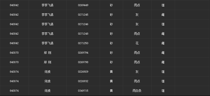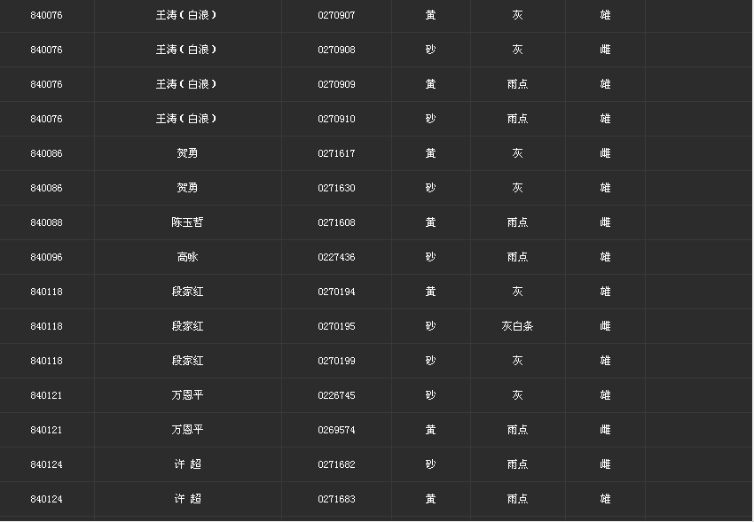 请鸽友自行核对,有误请于协会许超联系!