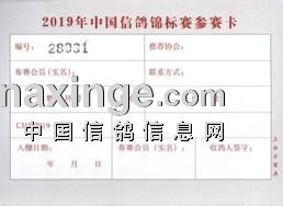 “2019年中国信鸽锦标赛”参赛卡的通知