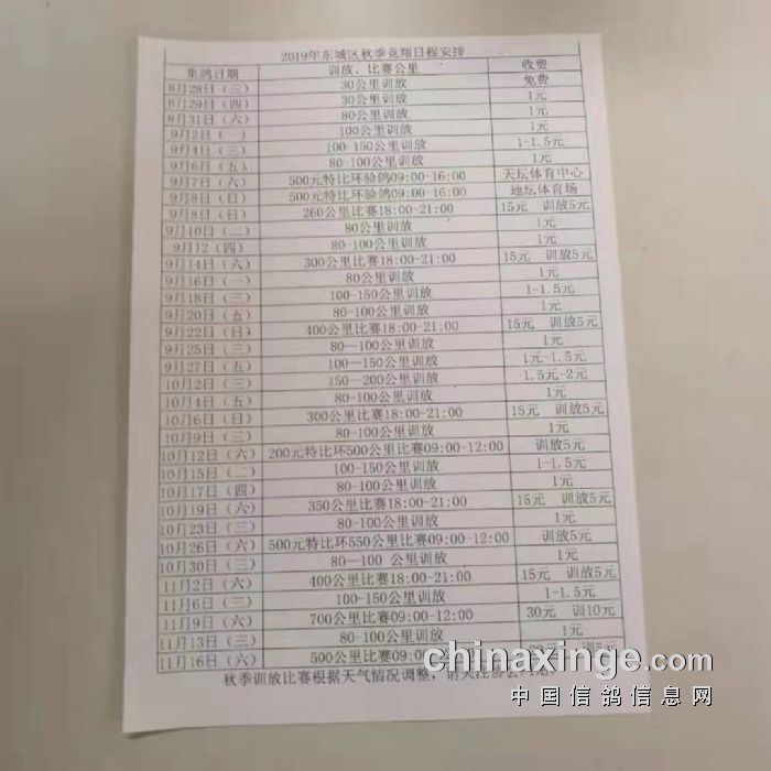 集鸽地点:天坛体育中心、地坛体育场北门院内协会办公室