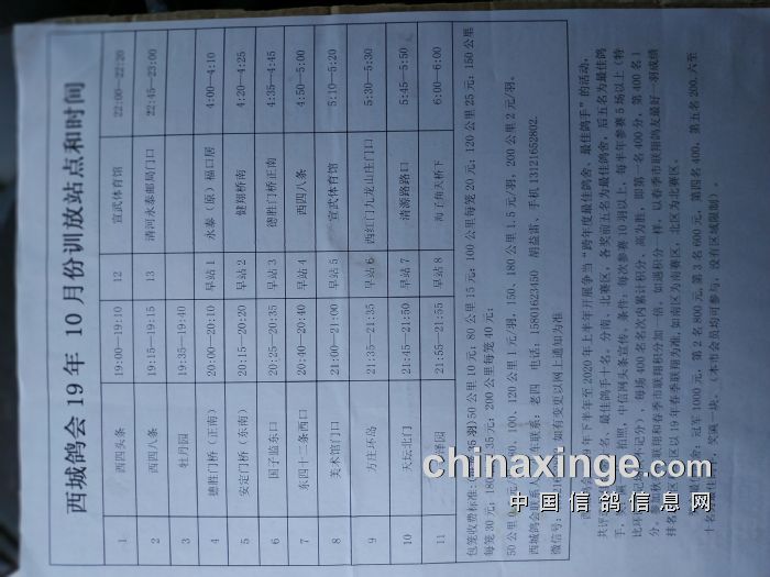 西城鸽会今晚7日,明早8日训100--120公里。请互相转告。谢谢!