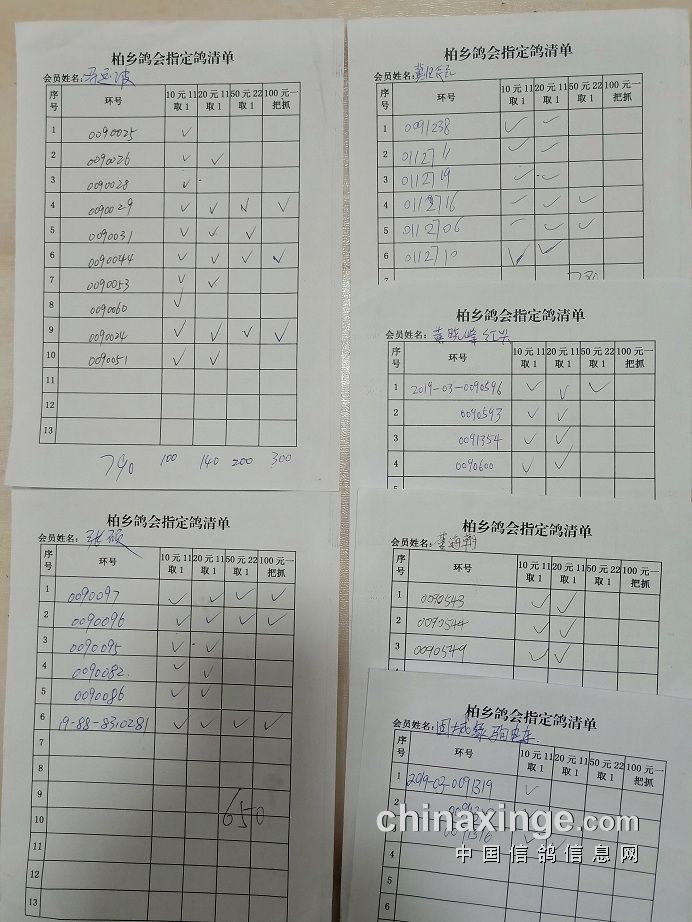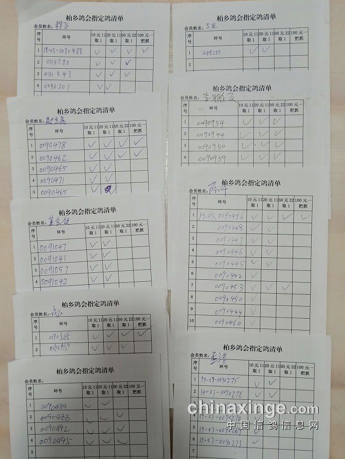 柏乡信鸽协会五关鸽王第二关指定清单西区