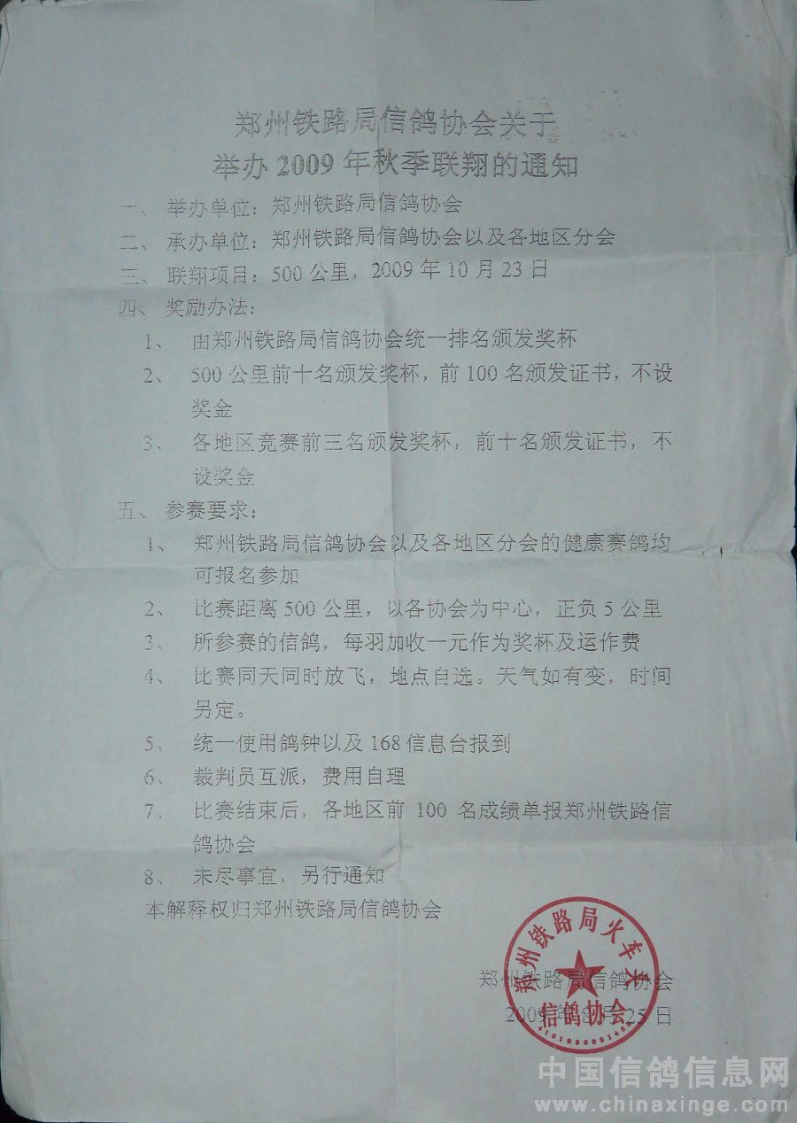 接省鸽会通知,我会在秋赛规程上登录了五市联翔的赛程,有部分会员对此有疑问,现将省鸽会通知原件照片上传供大家了解: