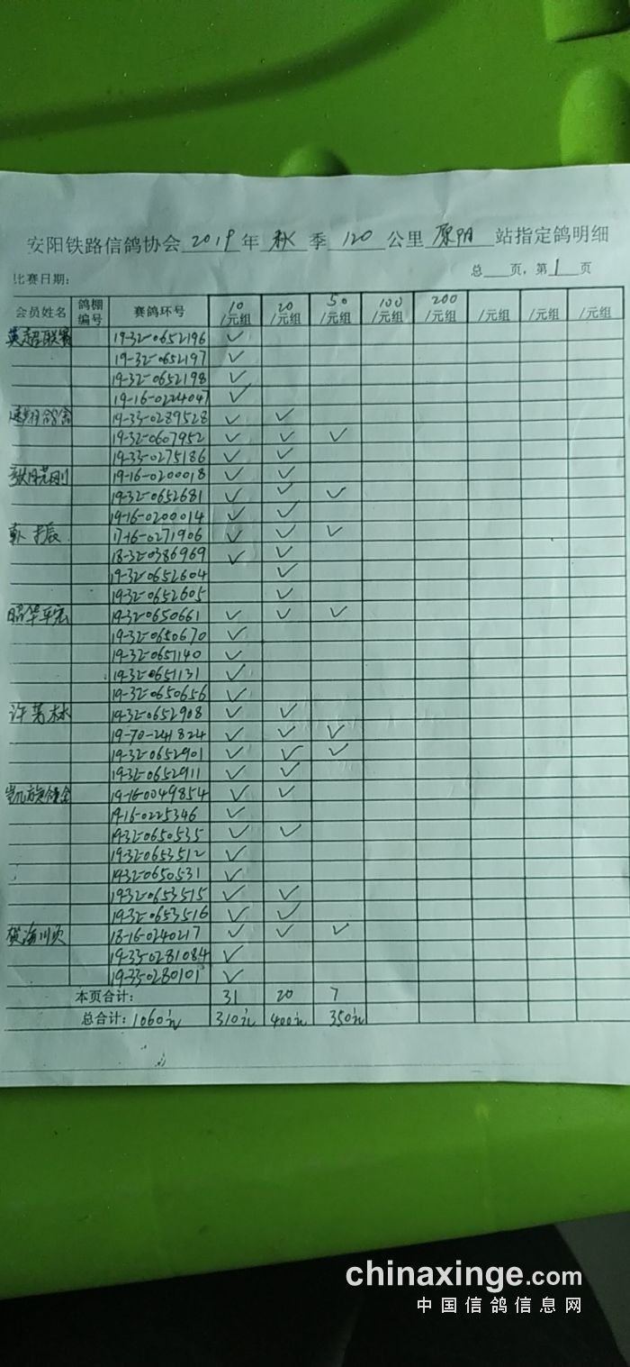 河南省安阳市铁路信鸽协会