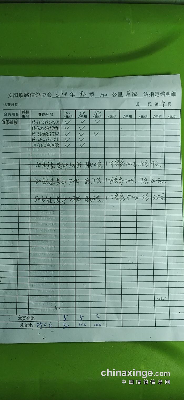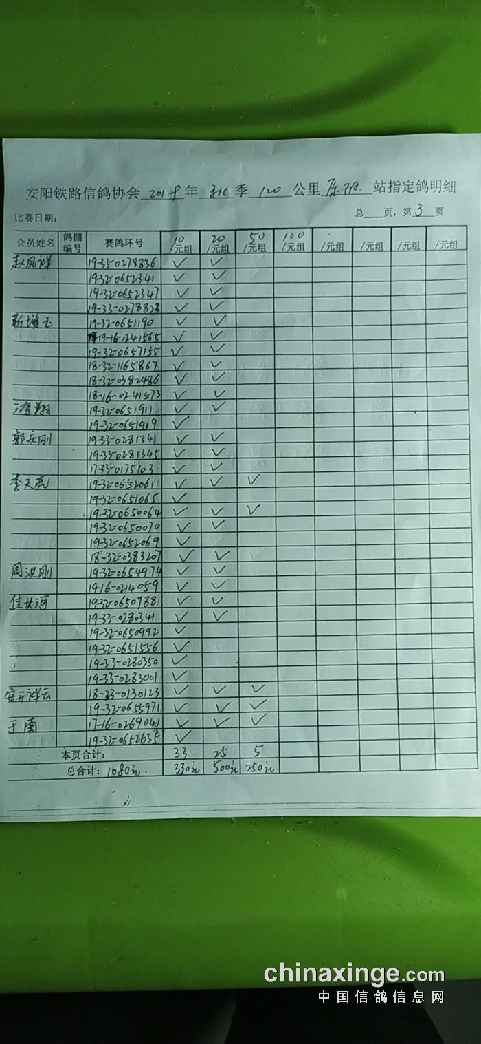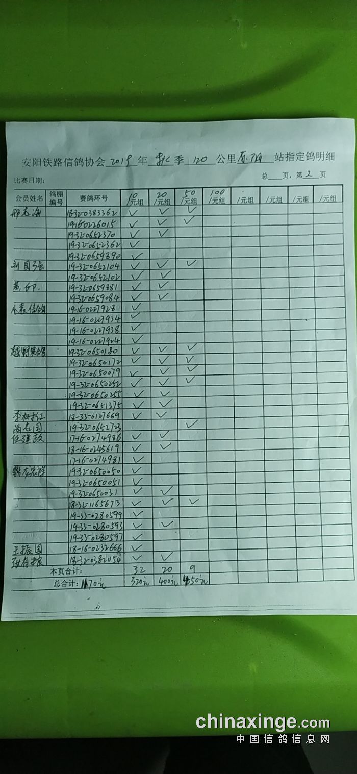 2019年秋120公里原阳站第二次测试赛指定明细