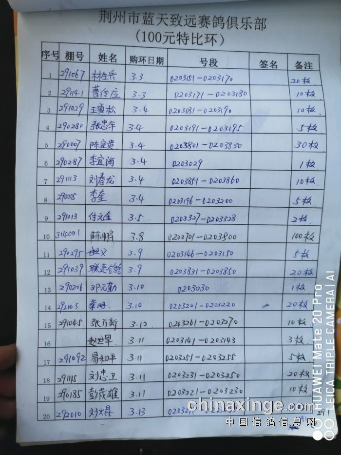 2017年11月22日全国千公里联赛廊坊站比赛集鸽清单
