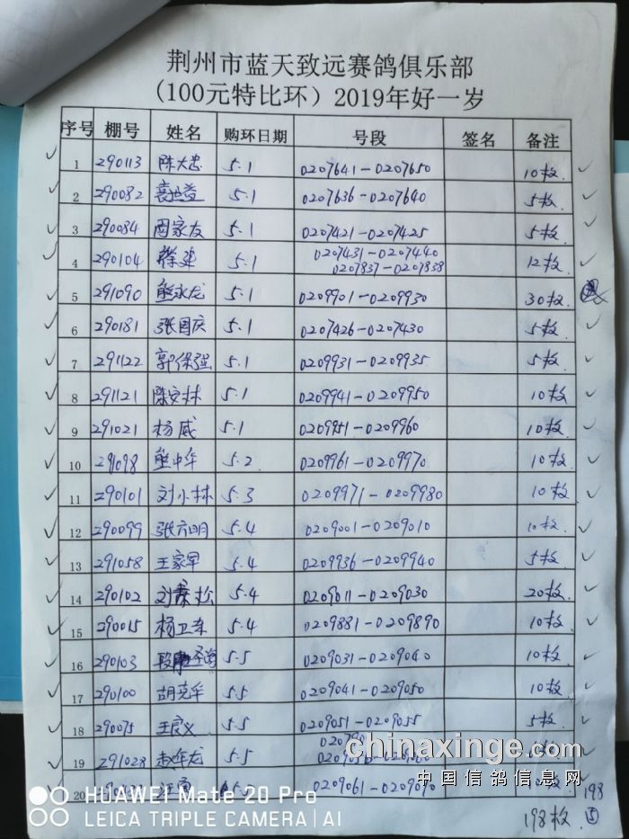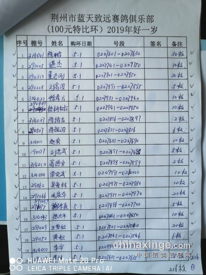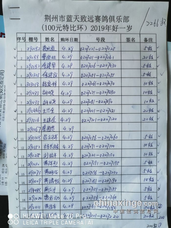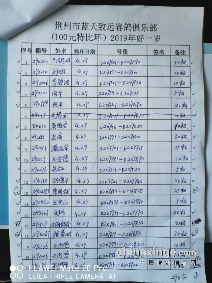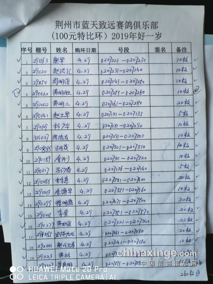 2017年11月22日全国千公里联赛廊坊站比赛集鸽清单
