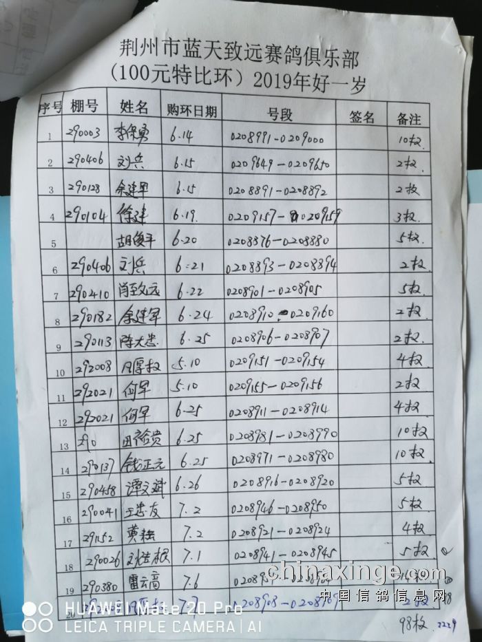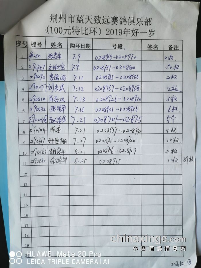 2017年11月22日全国千公里联赛廊坊站比赛集鸽清单