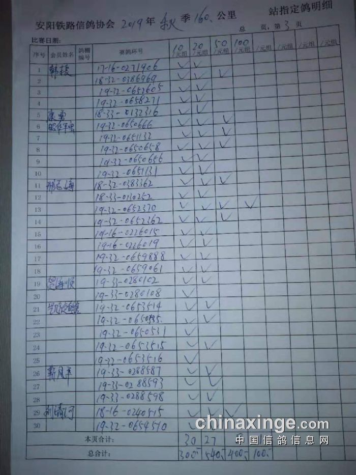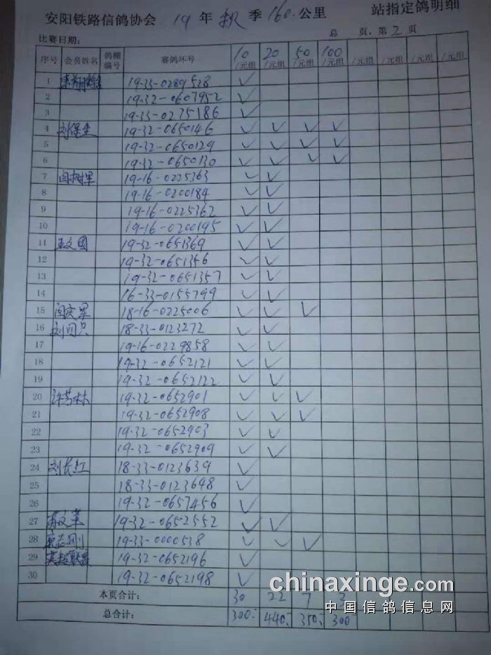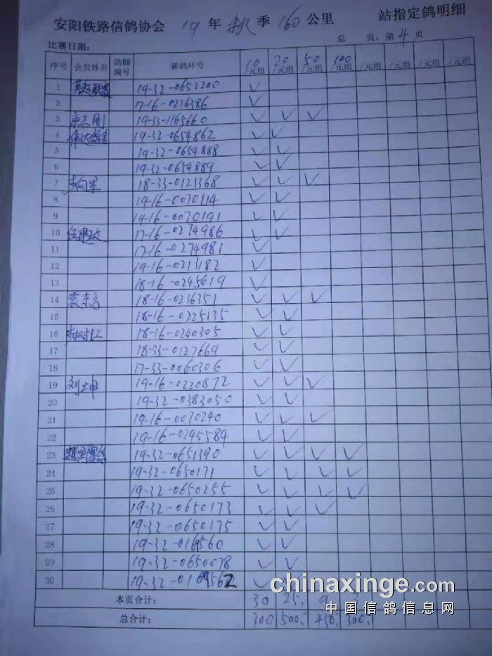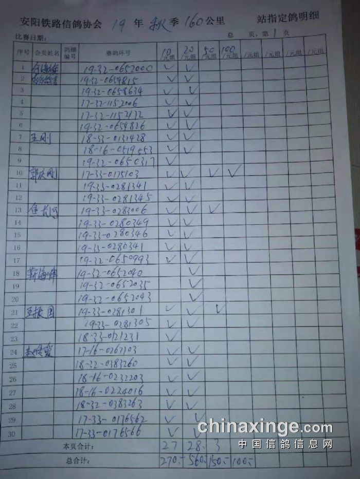 2019年秋季第一次160公里中牟站速度赛指定鸽明细