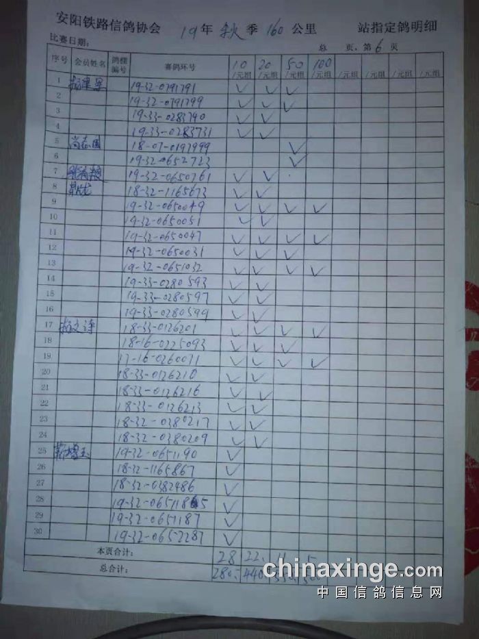 2019年秋季第一次160公里中牟站速度赛指定明细
