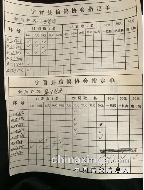 宁晋县信鸽协会特比环第一关指定清单