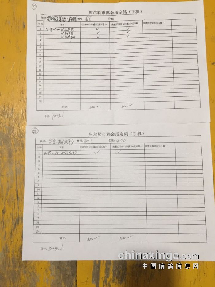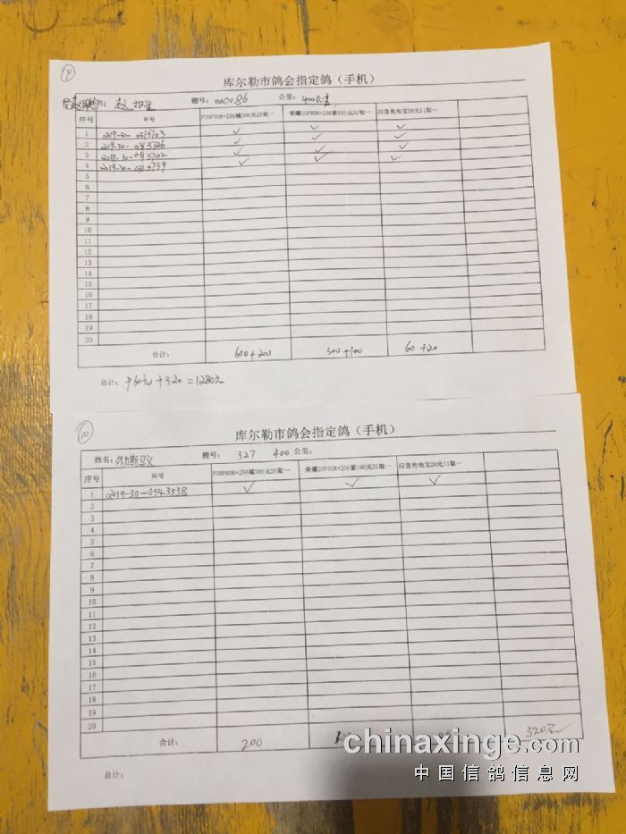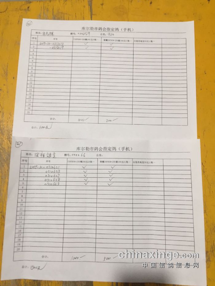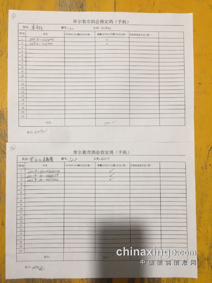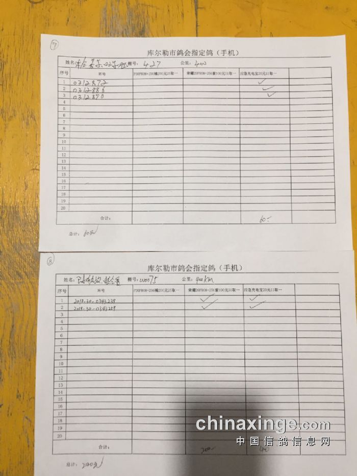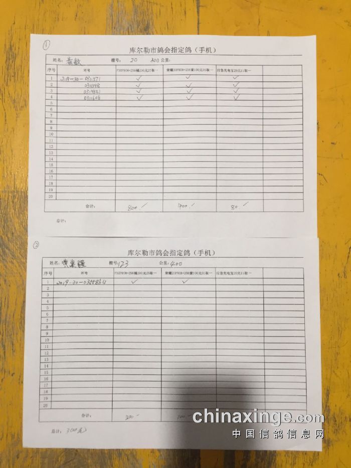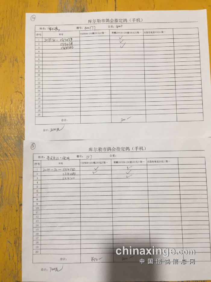 2019年秋四关特比第一关400公里指定鸽明细(手机)