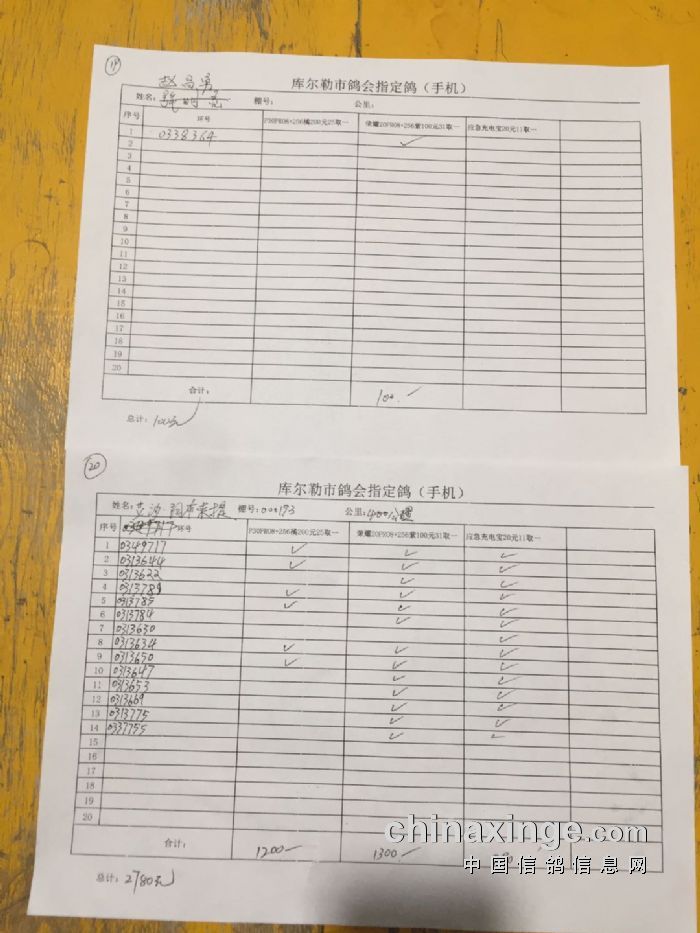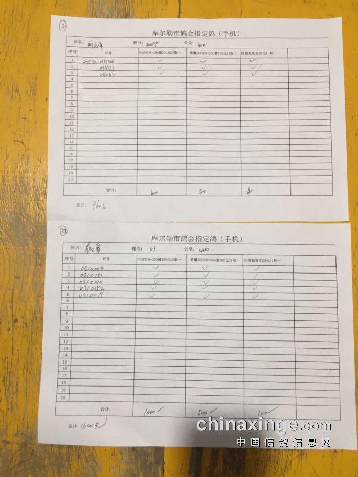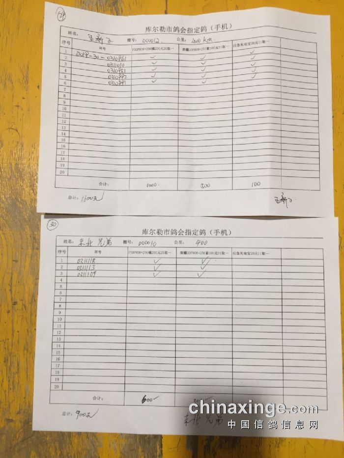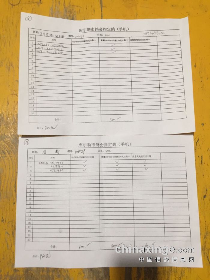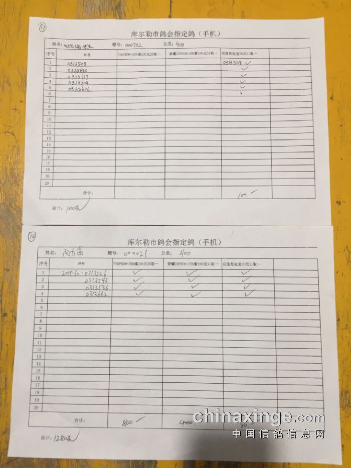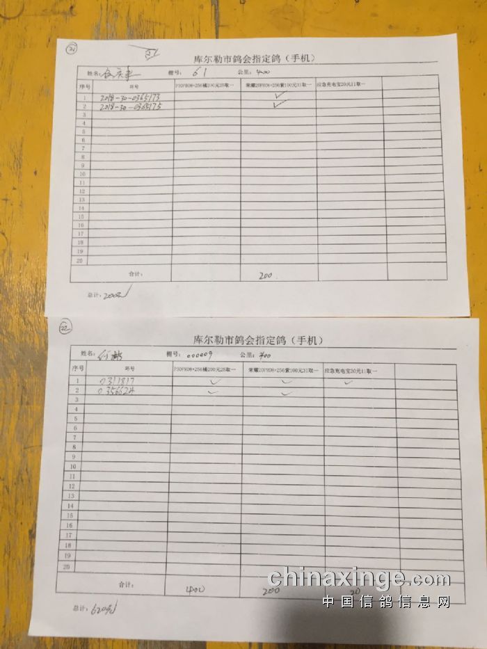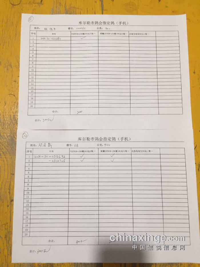 2019年秋四关特比第一关400公里指定鸽明细(手机)