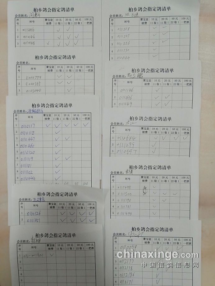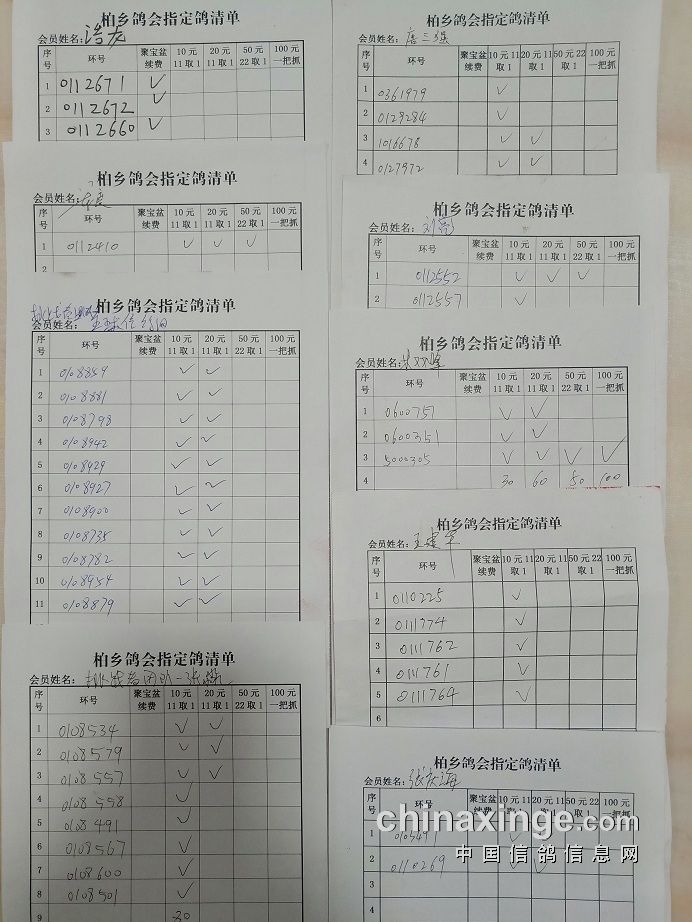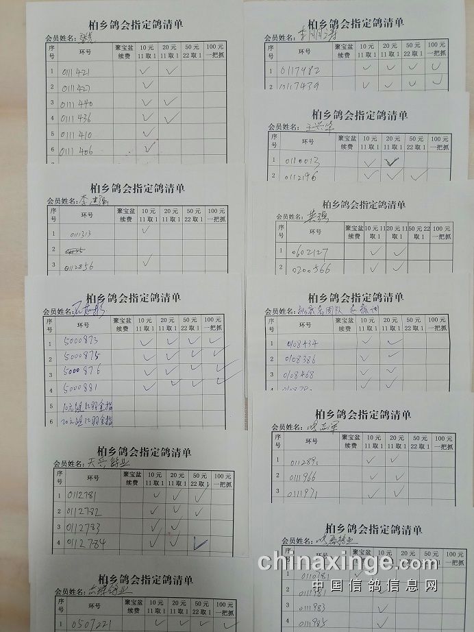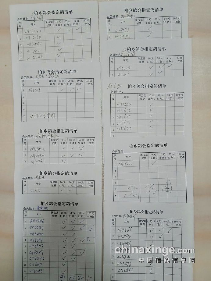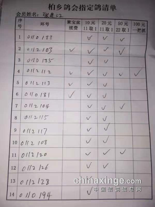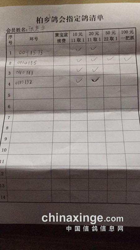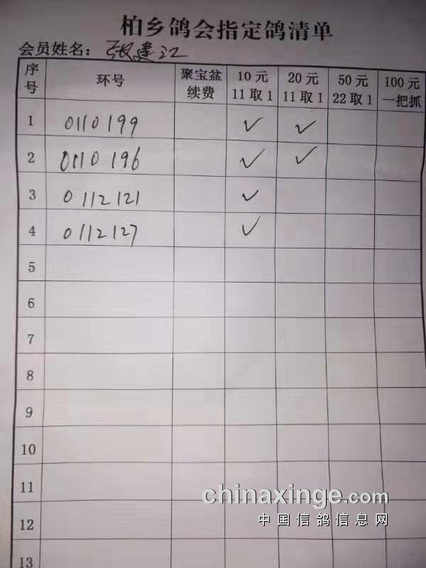 柏乡信鸽协会五关鸽王第五关指定清单东区