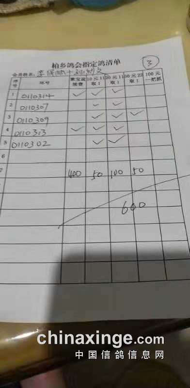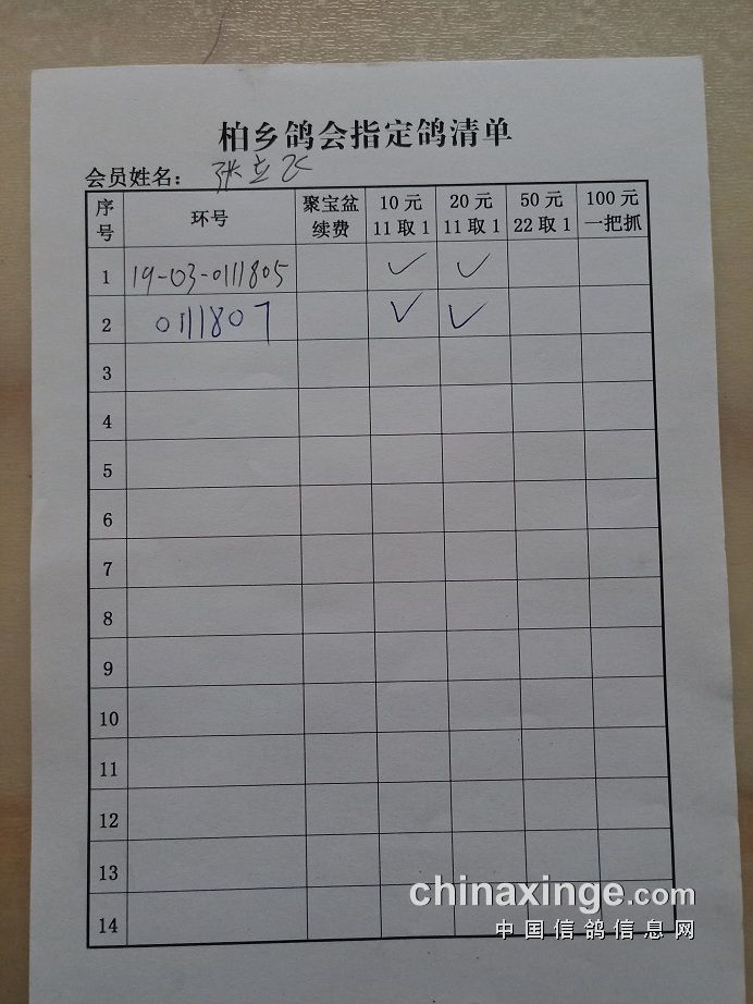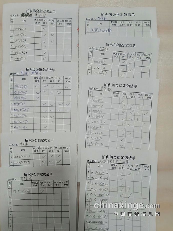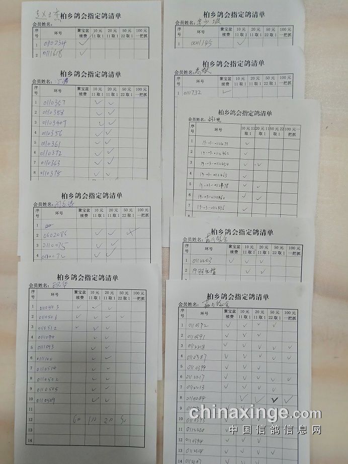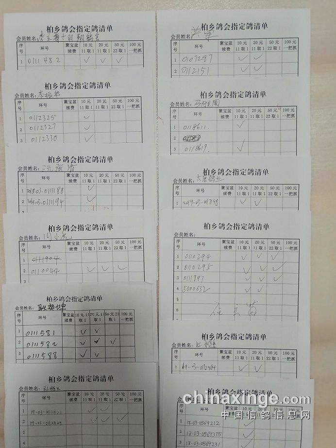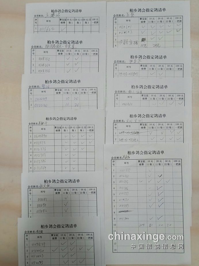 柏乡信鸽协会五关鸽王第五关指定清单东区