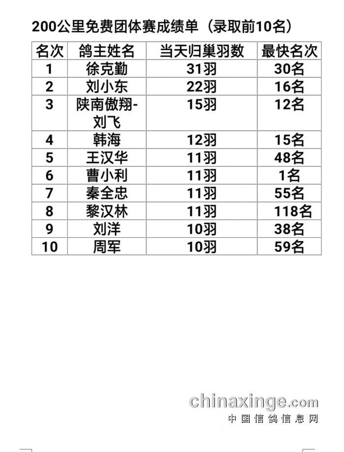 2025年秋季400公里临洮大赛10元鸽粮成绩单