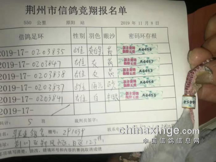 2017年11月22日全国千公里联赛廊坊站比赛集鸽清单