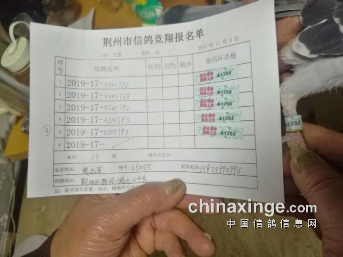 2017年11月22日全国千公里联赛廊坊站比赛集鸽清单