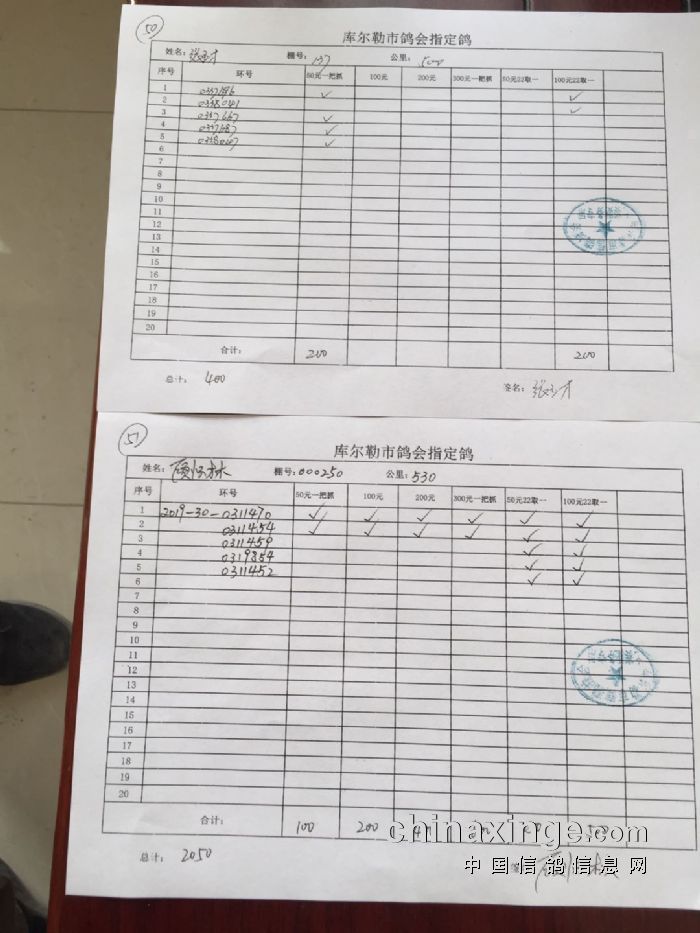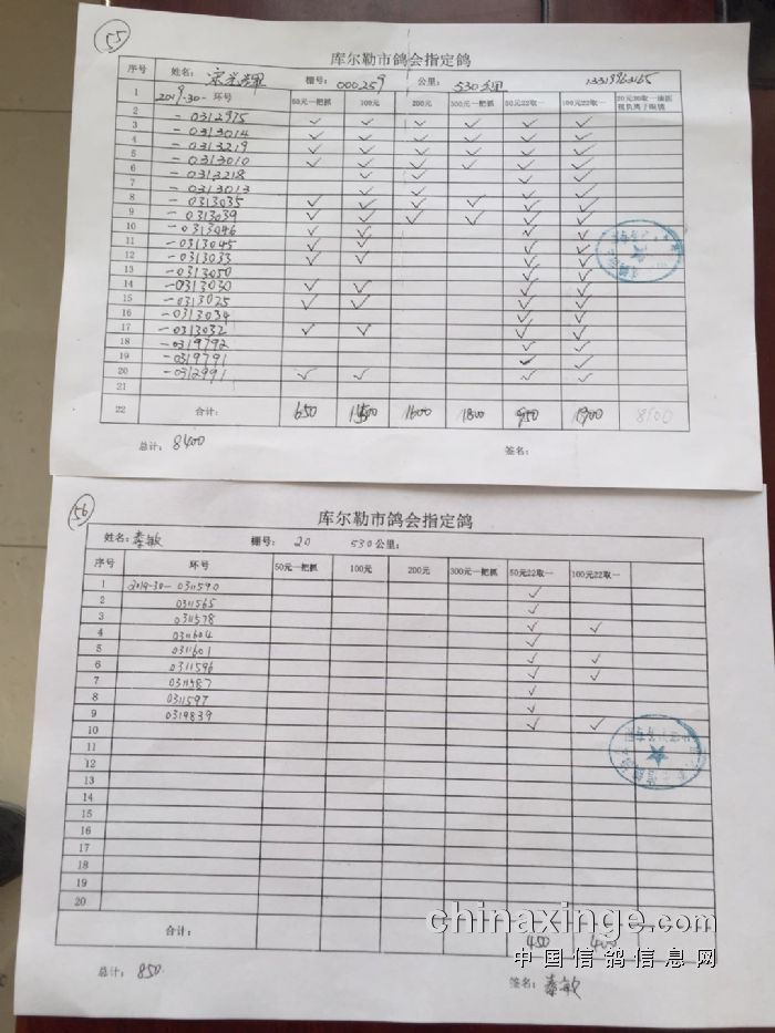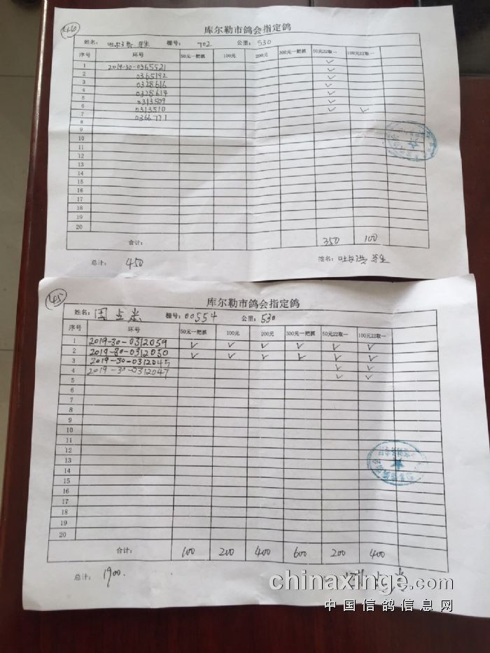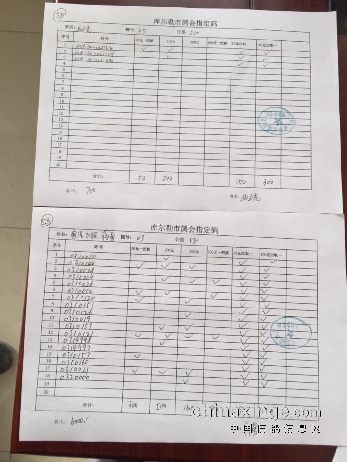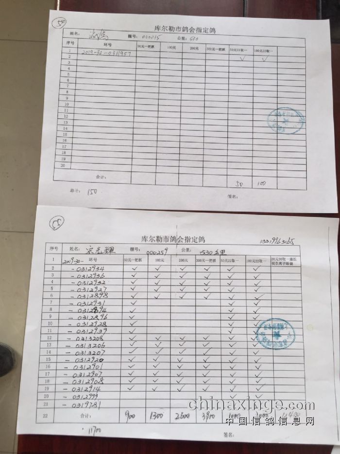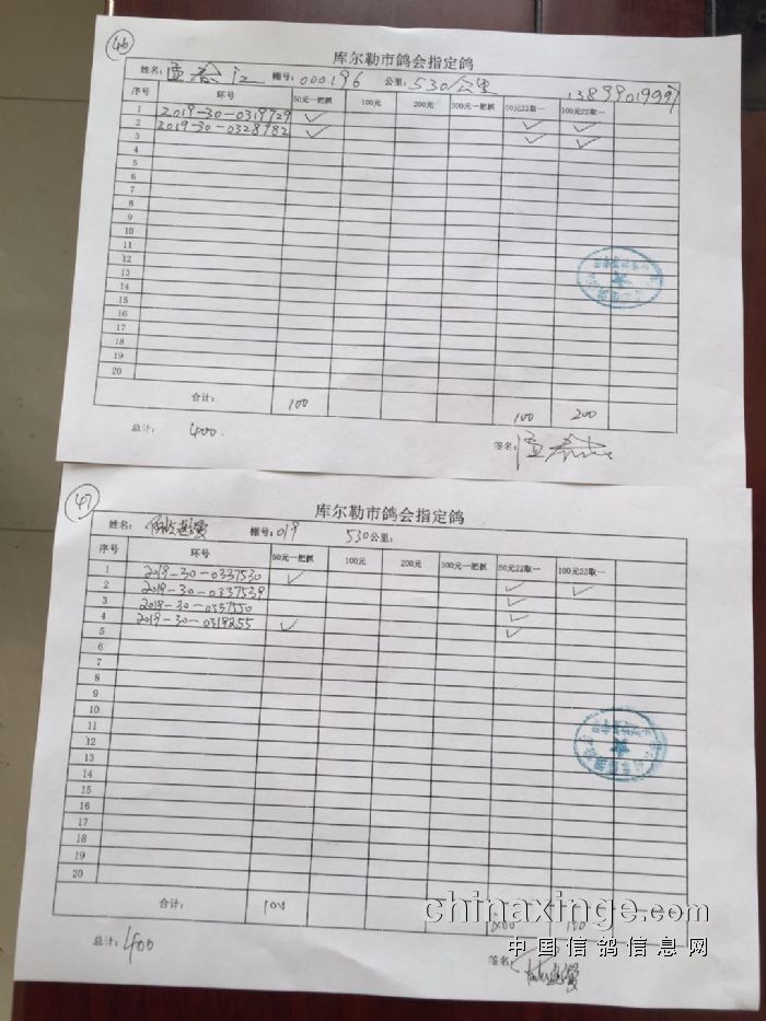 2019年秋四关特比第三关530公里指定鸽明 细(二)