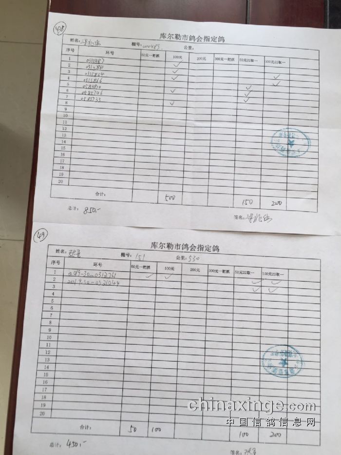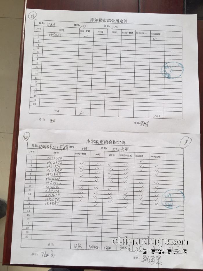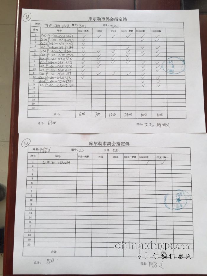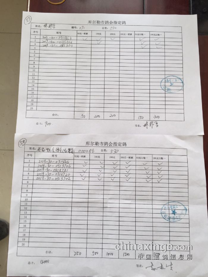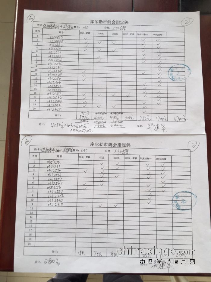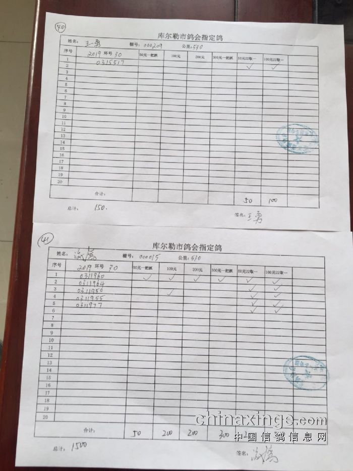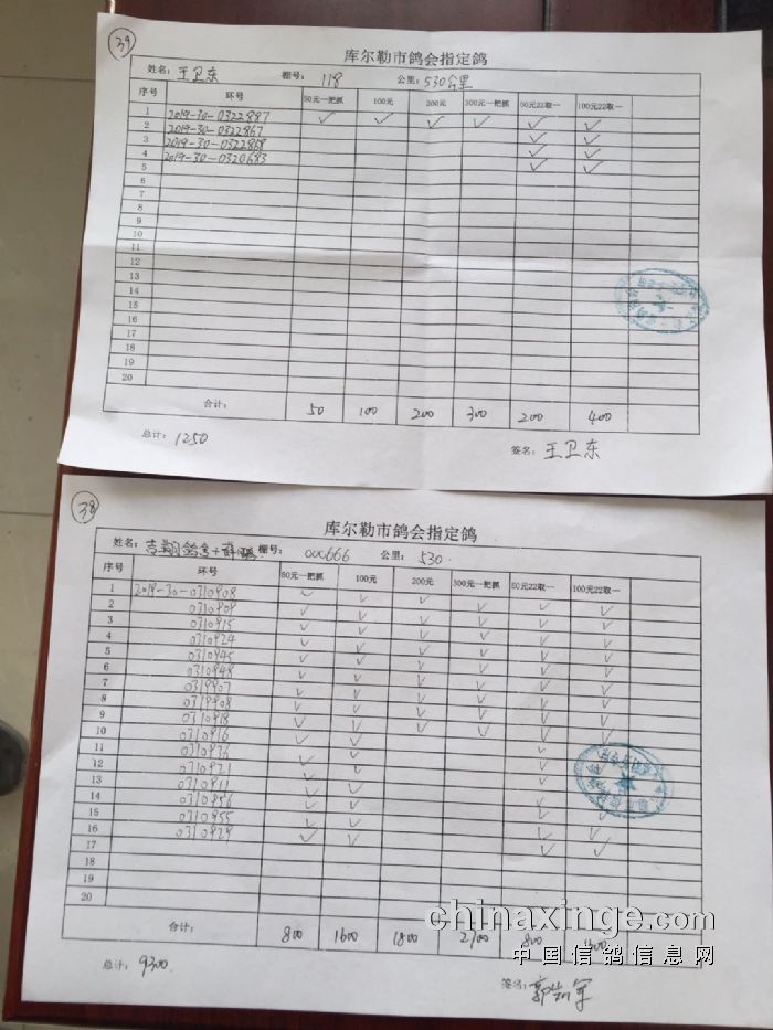 2019年秋四关特比第三关530公里指定鸽明 细(二)
