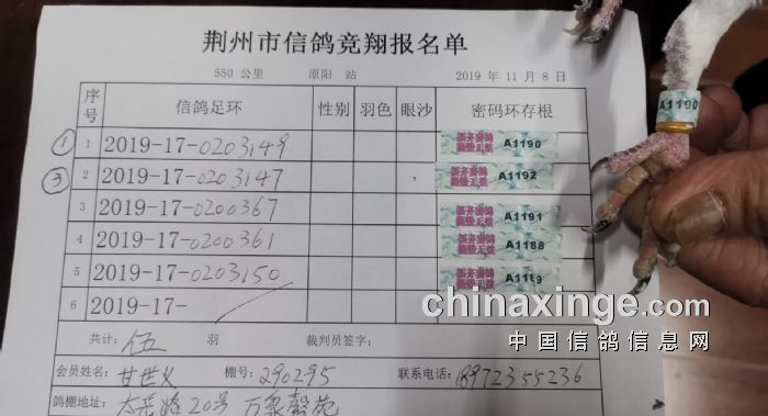 2017年11月22日全国千公里联赛廊坊站比赛集鸽清单