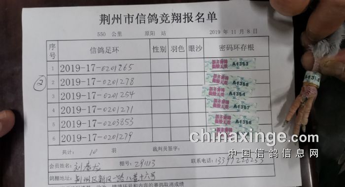 2017年11月22日全国千公里联赛廊坊站比赛集鸽清单