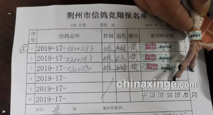 2017年11月22日全国千公里联赛廊坊站比赛集鸽清单
