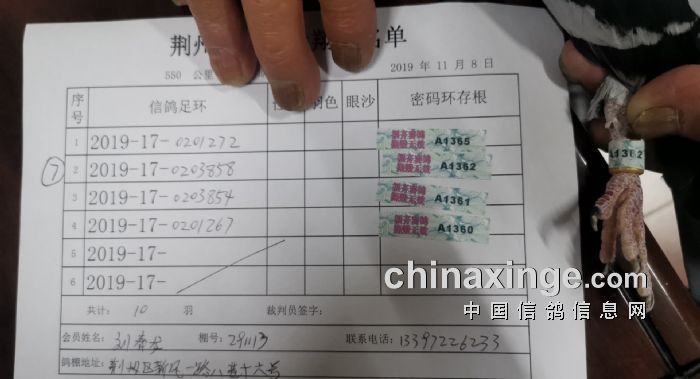 2017年11月22日全国千公里联赛廊坊站比赛集鸽清单