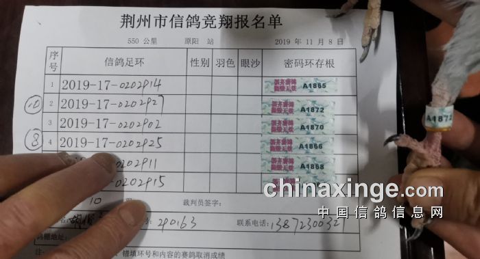 2017年11月22日全国千公里联赛廊坊站比赛集鸽清单