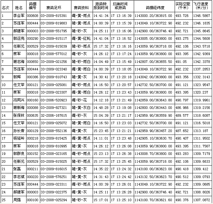 09年秋“罗伯特杯”500公里大奖赛(20元组)成绩