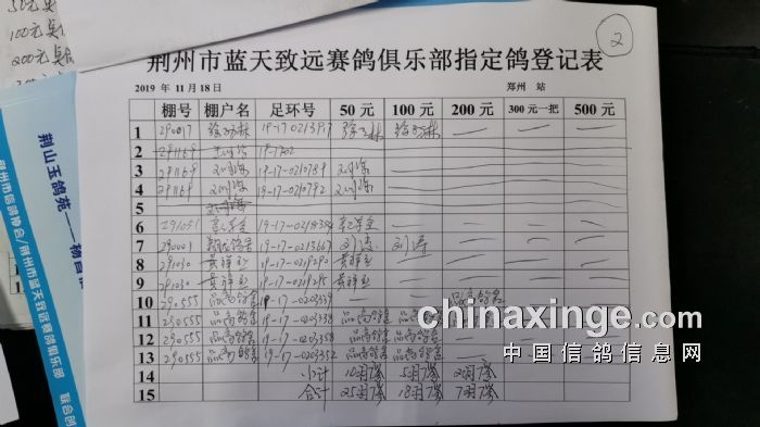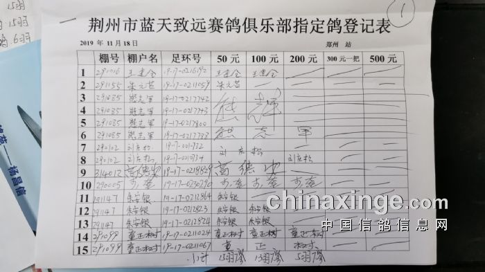 2019年秋11月18日500公里暨福齐杯省幼鸽通讯赛郑州站比赛指定鸽明细
