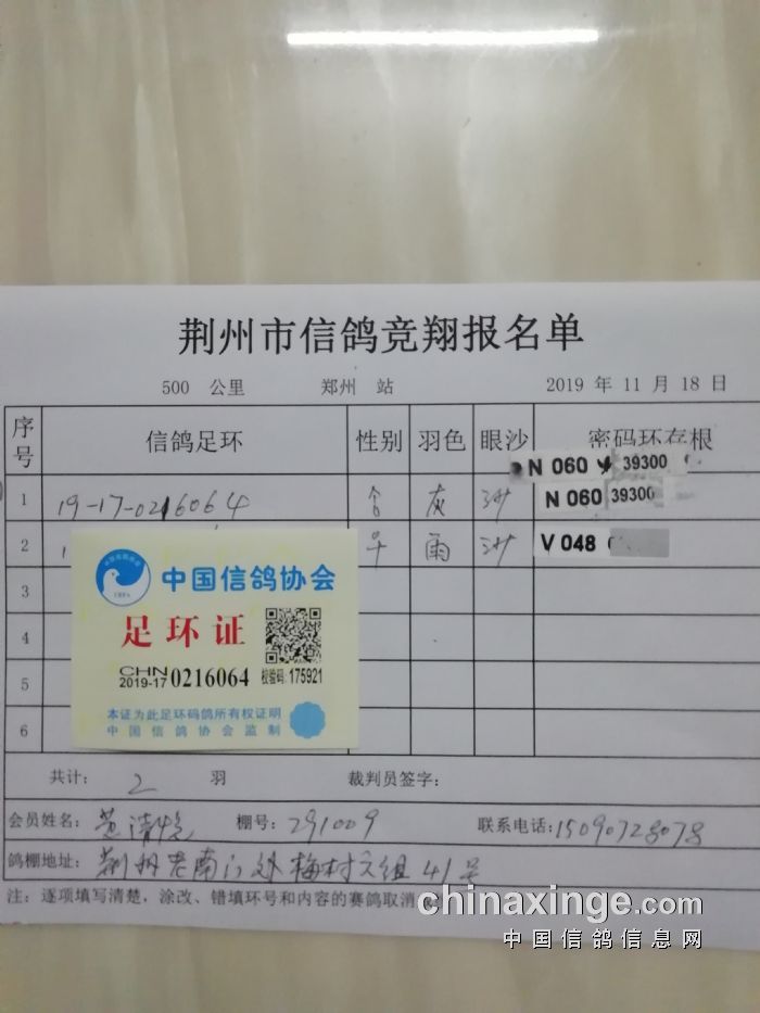 2017年11月26日480公里新郑站年度王中王比赛集鸽清单