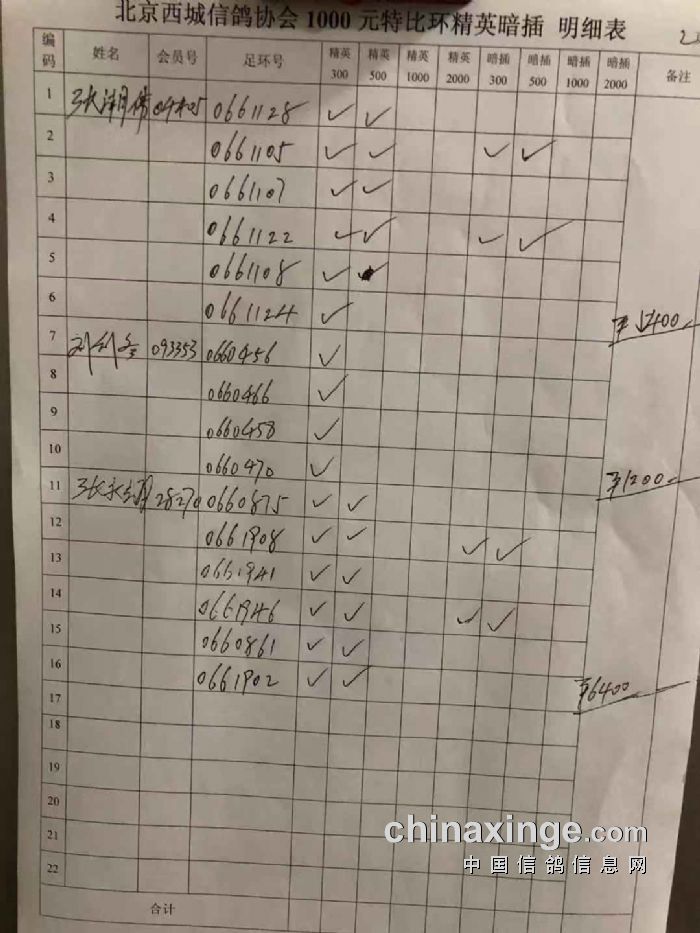 西城鸽会500特比第二关北区临时成绩