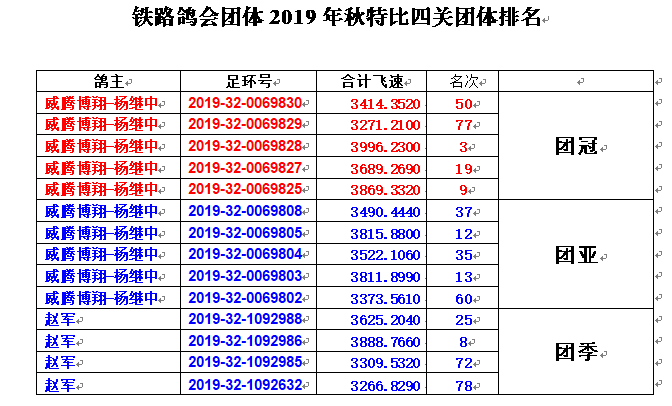 咸阳铁路信鸽协会2024年秋季特比环双关暂排成绩
