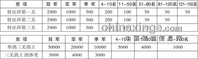 5、三关鸽王录取办法为:由最终C组鸽插组鸽赛鸽抢取奖金。如C组插组鸽不足20羽总奖金一把抓,超过20羽录取10名。