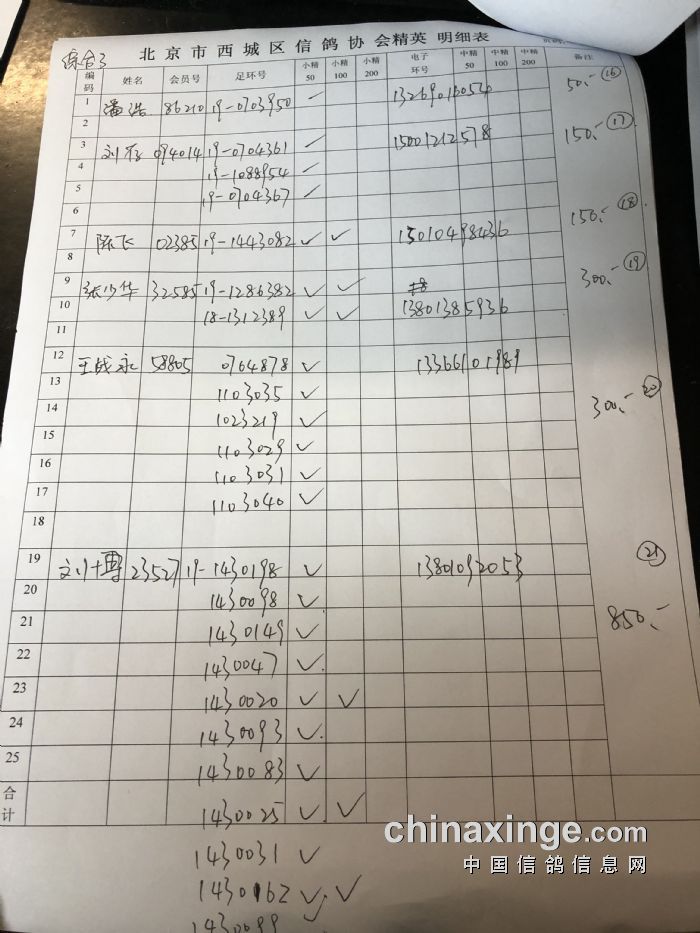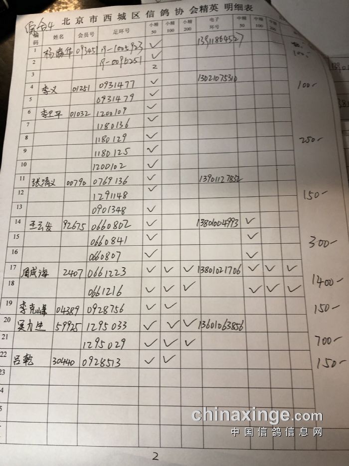 西城第八届“跨双年度最佳鸽舍、最佳鸽手”秋季积分光荣榜排名