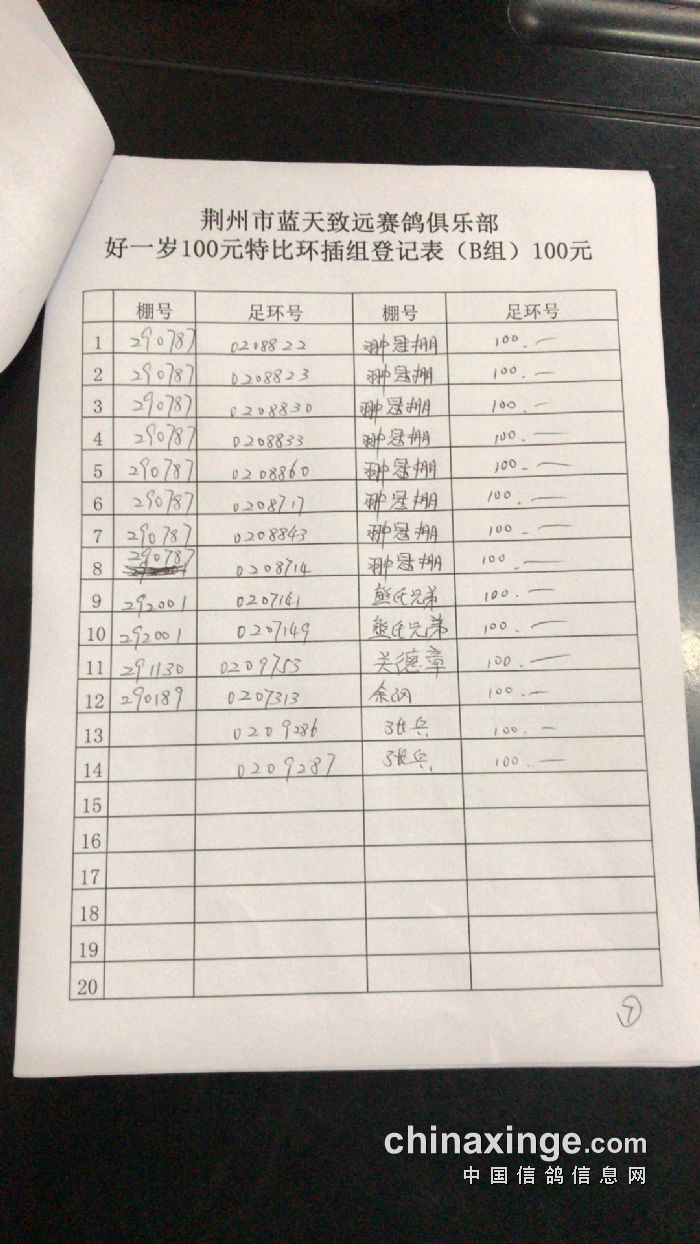 2017年11月26日480公里新郑站年度王中王比赛集鸽清单
