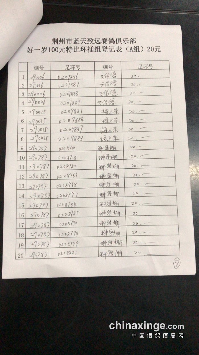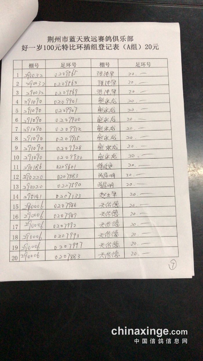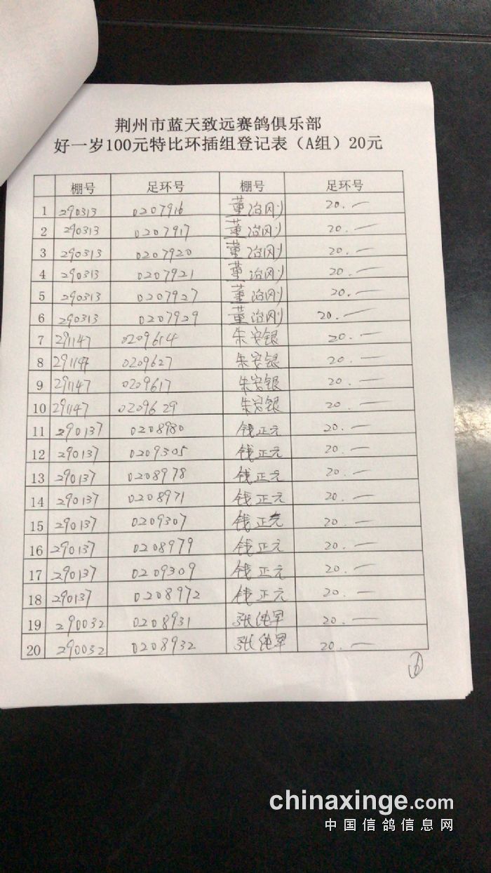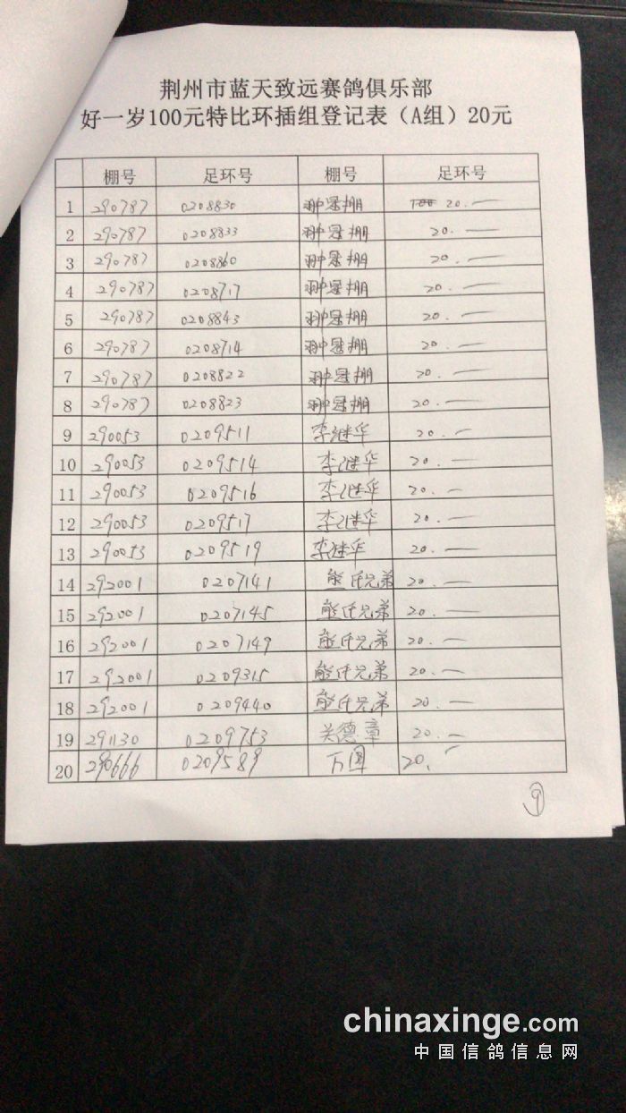 2017年11月26日480公里新郑站年度王中王比赛集鸽清单