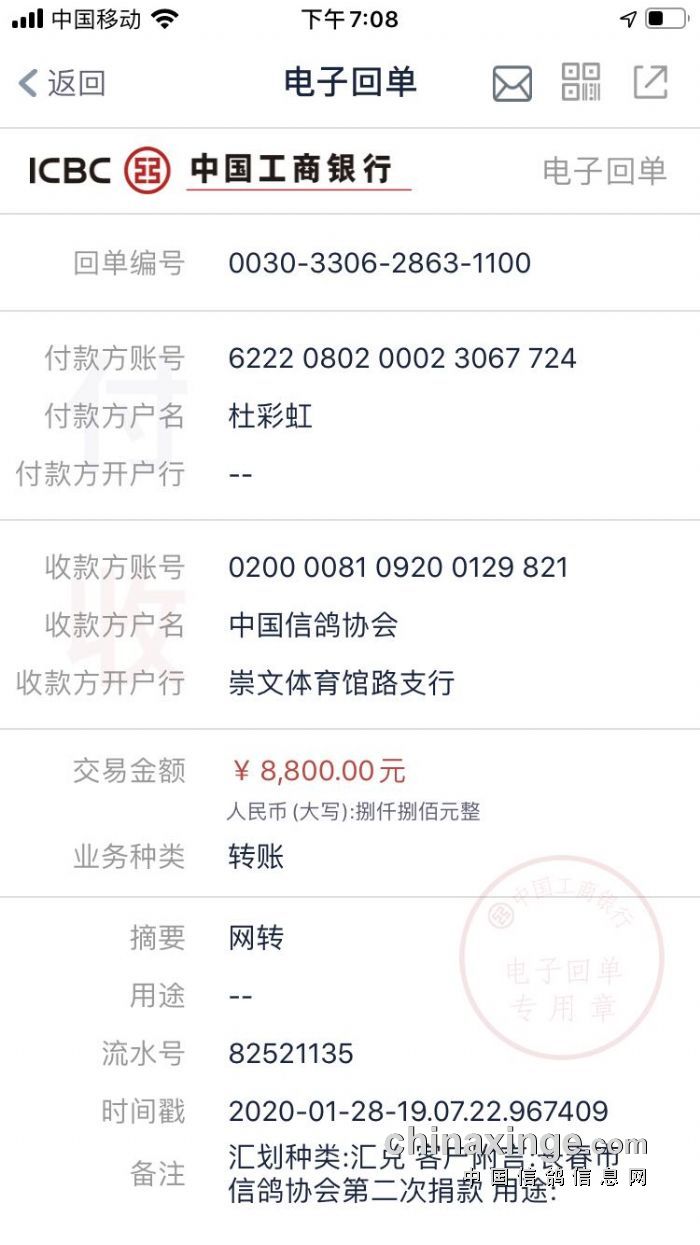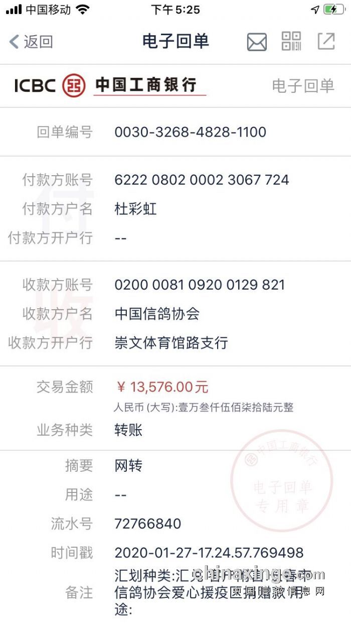 长春市信鸽协会开展的“大爱无疆、积极捐款”活动已经进行两天了,截止今日16:00已经完成了22376元的捐款,所捐款项已汇到中国信鸽协会。