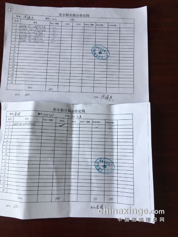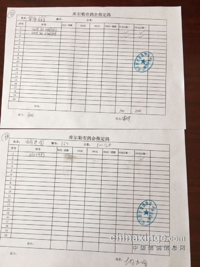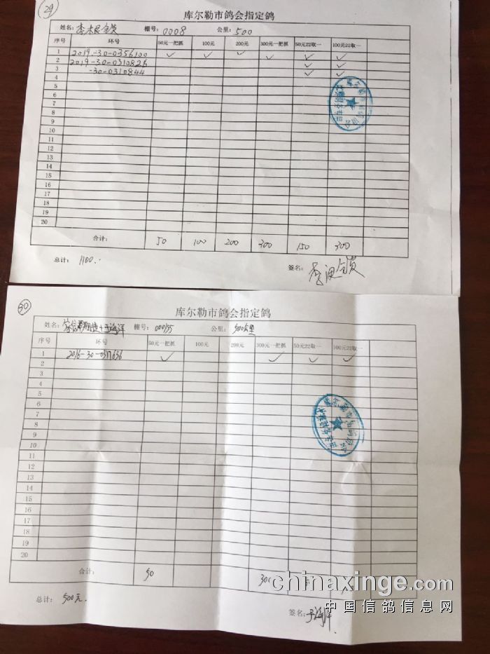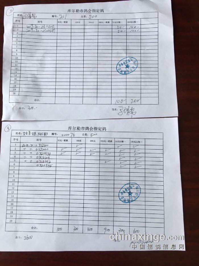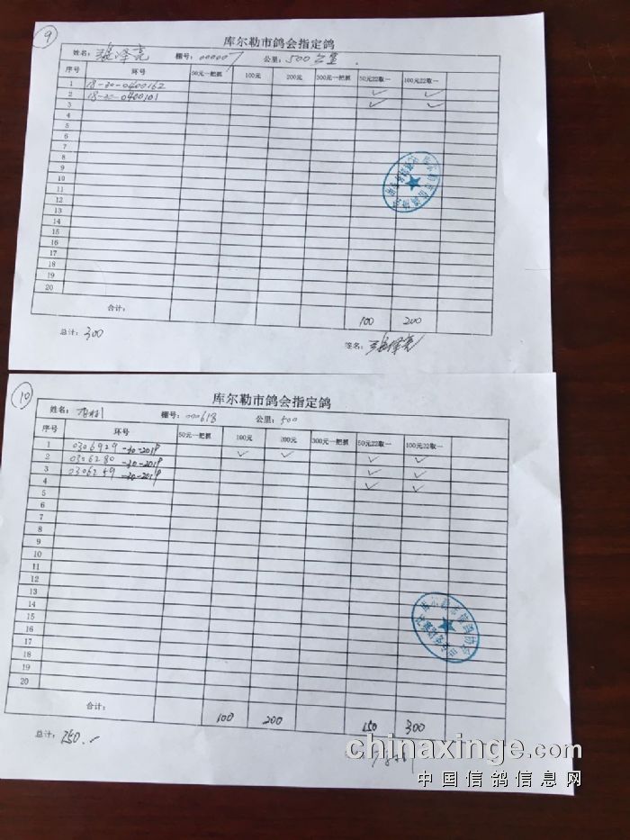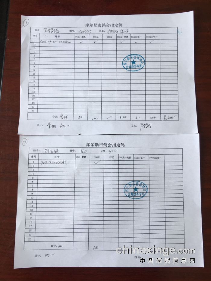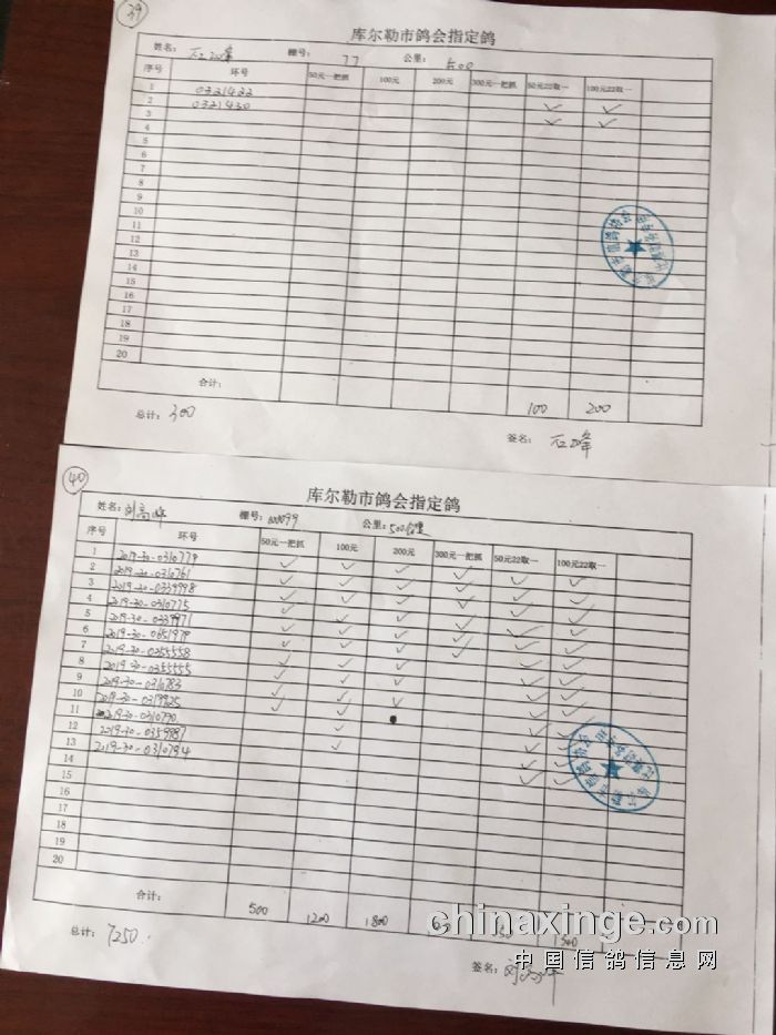 2020年春季500公里第一关指定鸽交费明细(一)