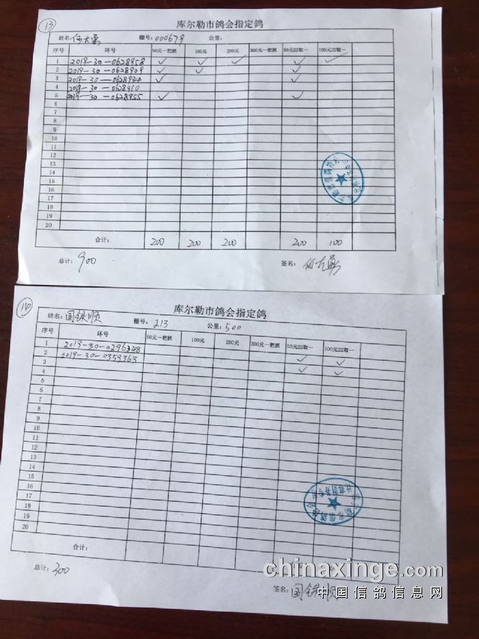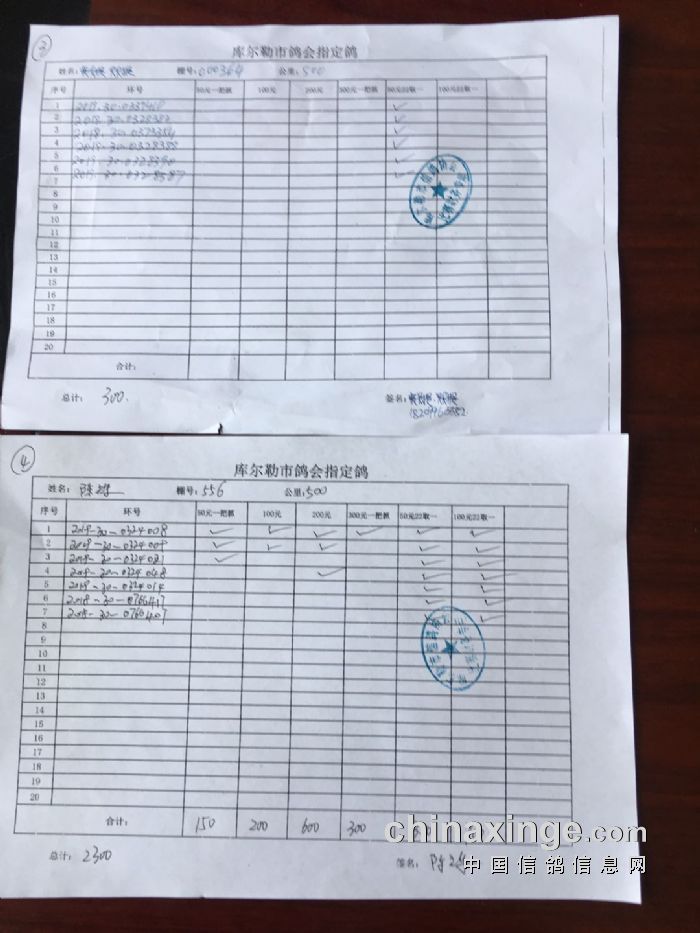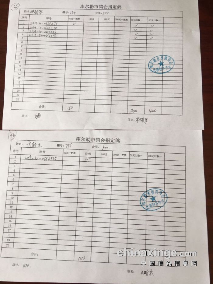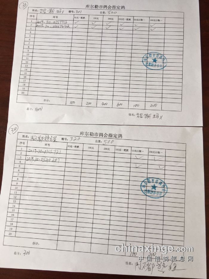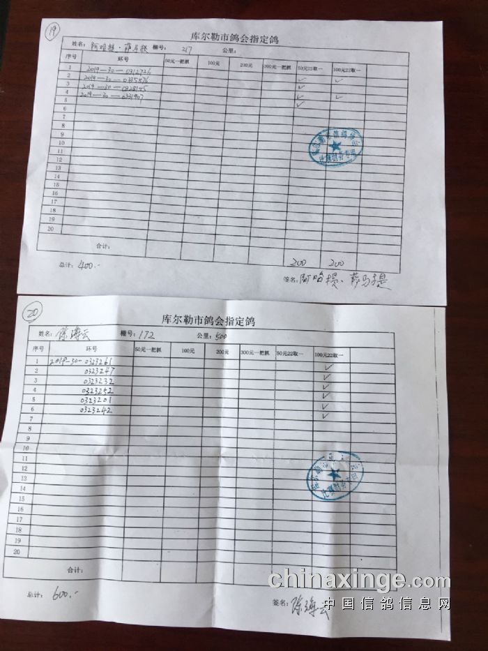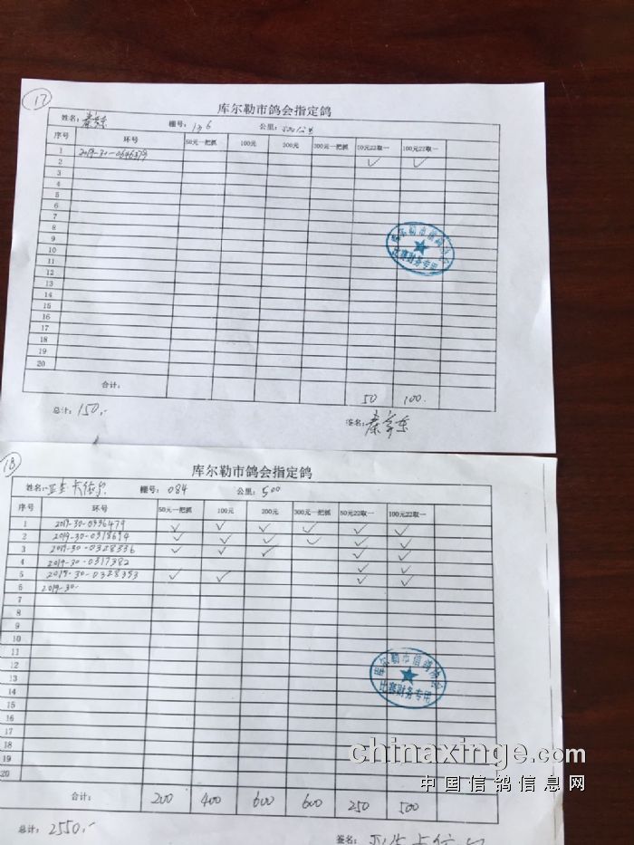2020年春季500公里第一关指定鸽交费明细(一)