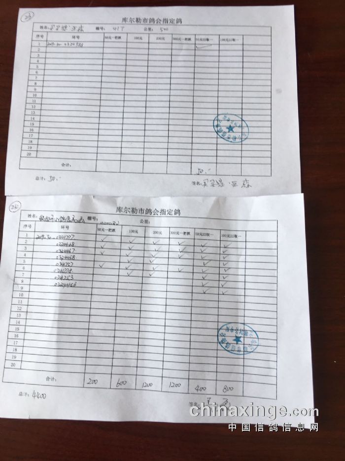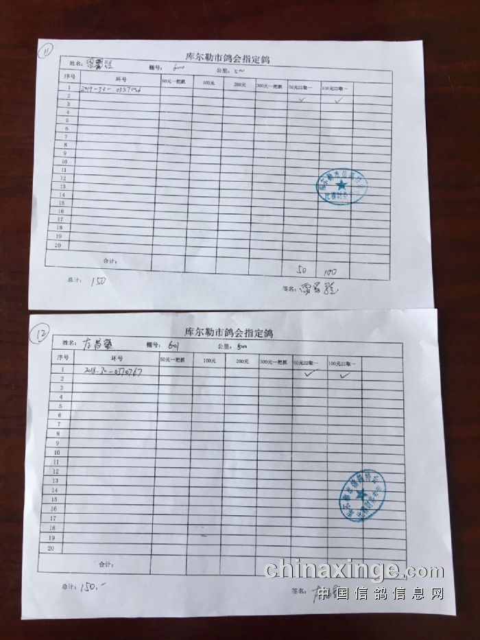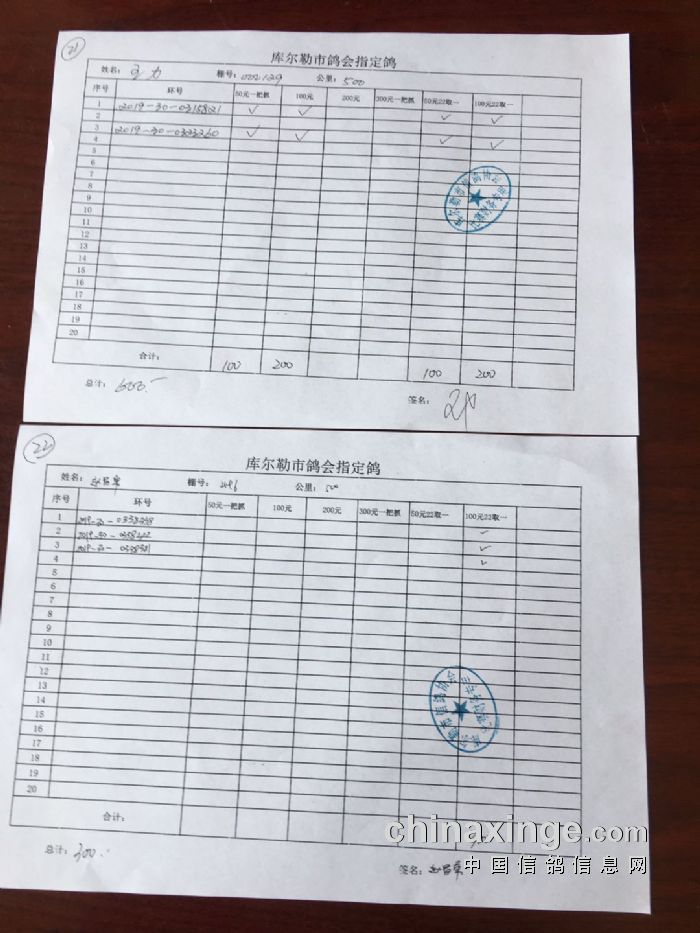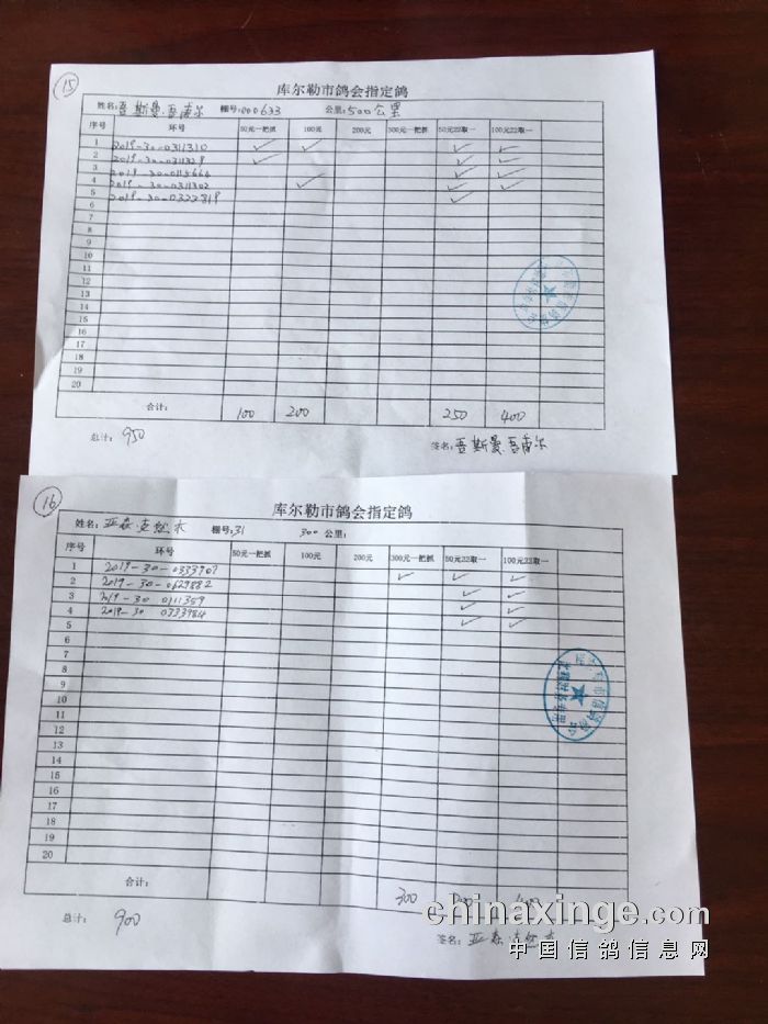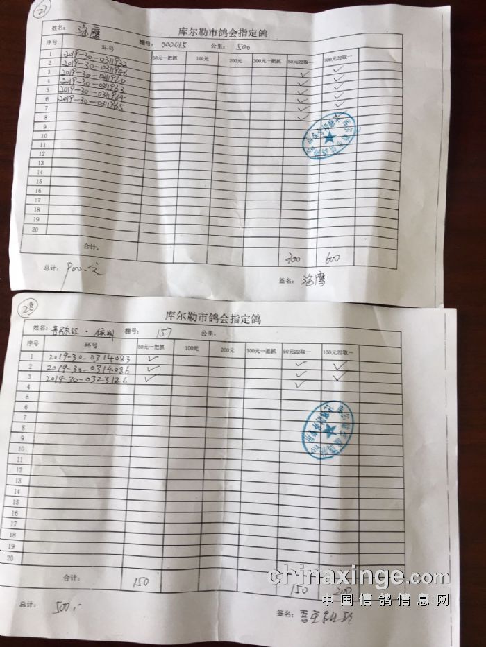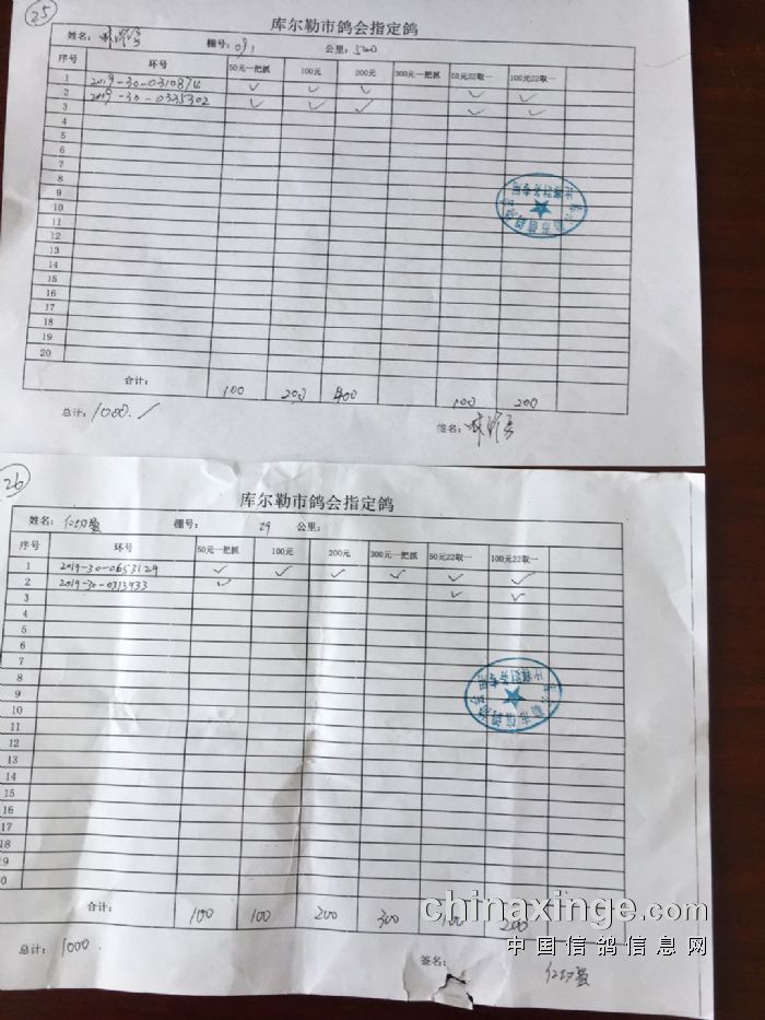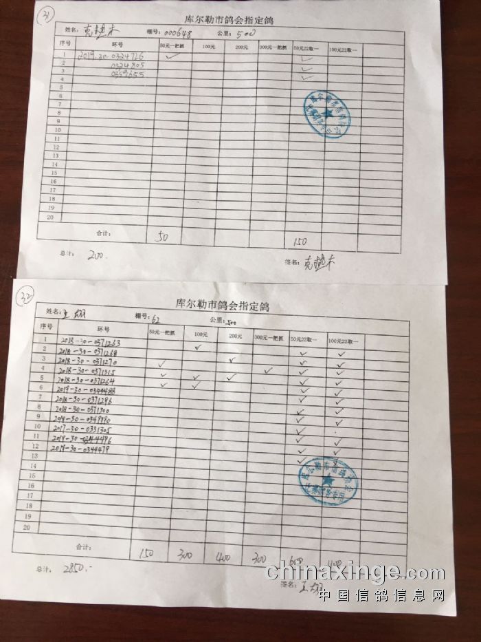 2020年春季500公里第一关指定鸽交费明细(一)