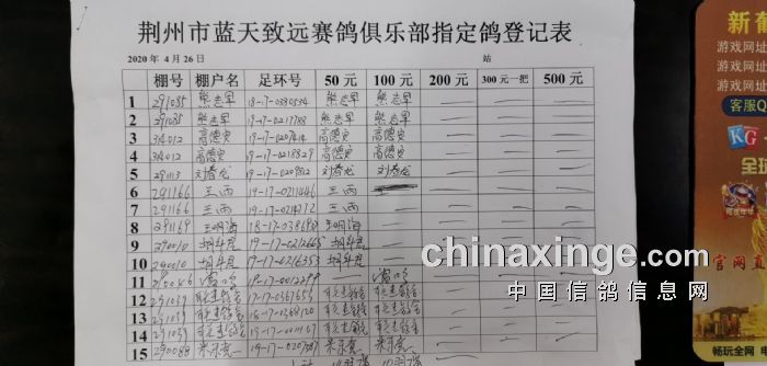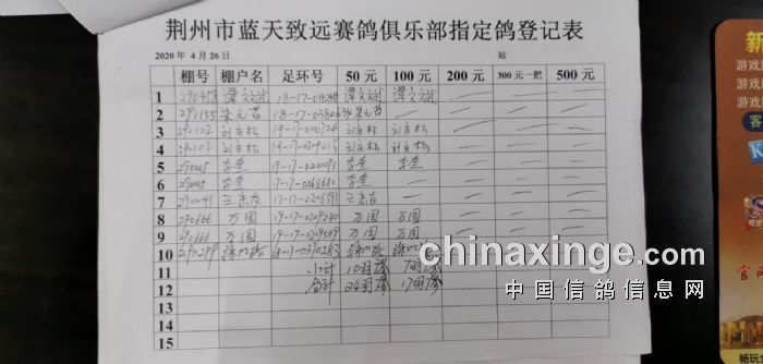 2017年11月26日480公里新郑站年度王中王比赛集鸽清单
