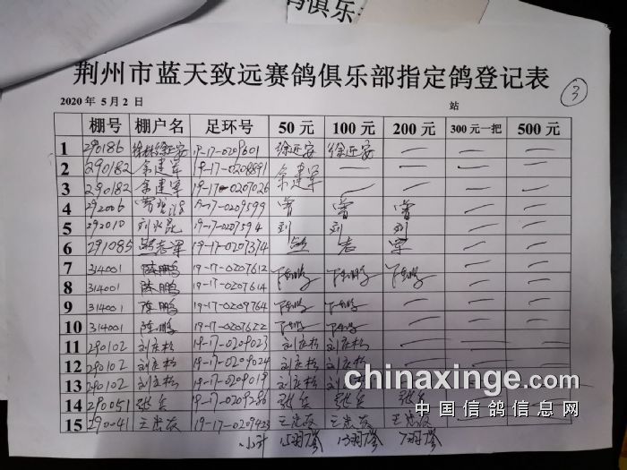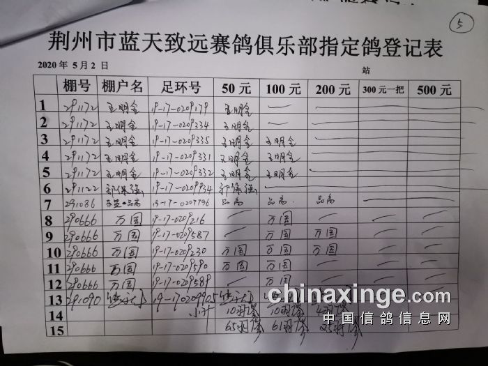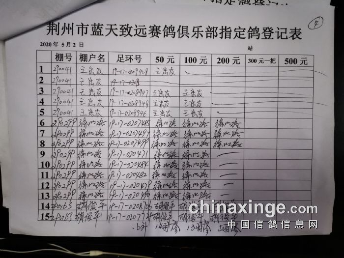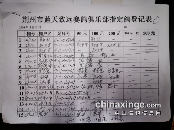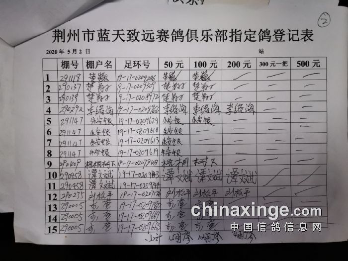2020年春5月2日370公里特比环第一关测试指定鸽明细