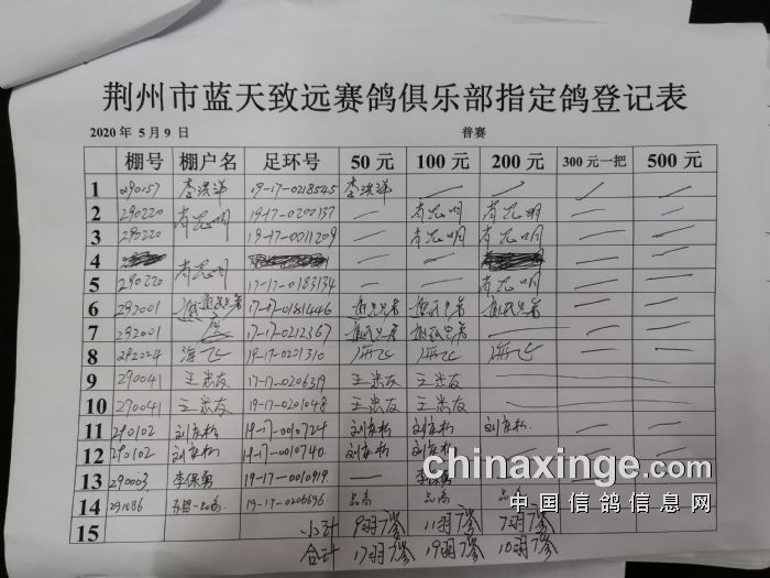 2017年11月26日480公里新郑站年度王中王比赛集鸽清单