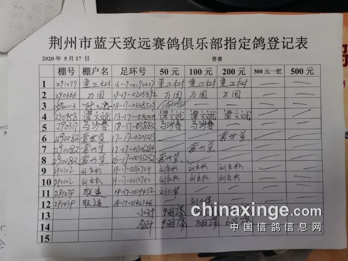 2017年11月26日480公里新郑站年度王中王比赛集鸽清单