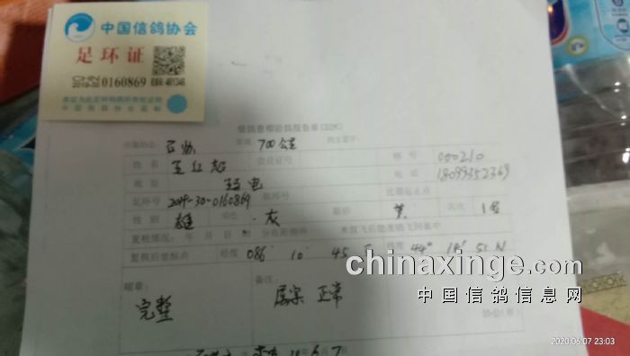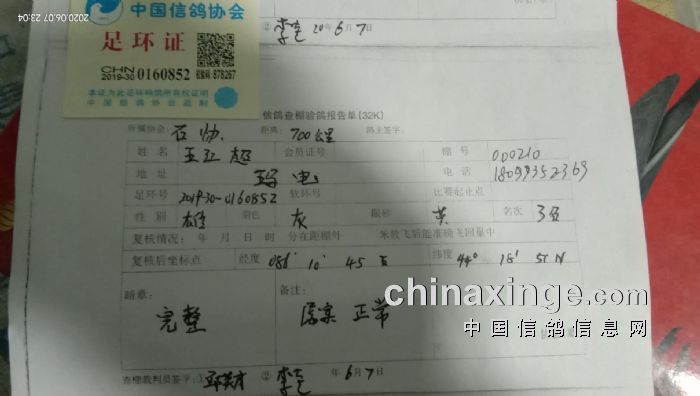石河子信鸽协会2020春季700公里前三名验鸽照片