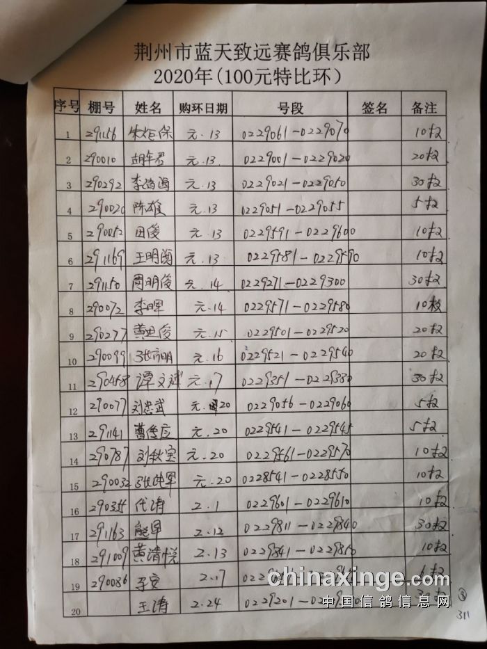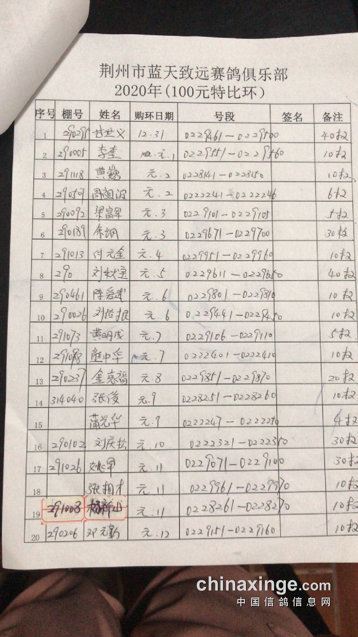 2017年11月26日480公里新郑站年度王中王比赛集鸽清单