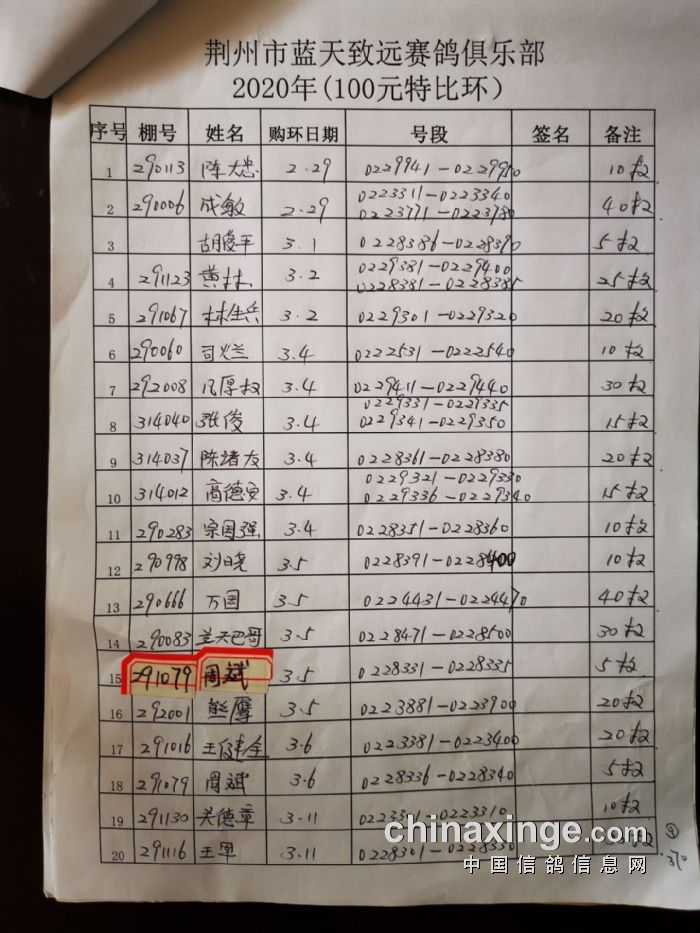 2017年11月22日全国千公里联赛廊坊站比赛集鸽清单